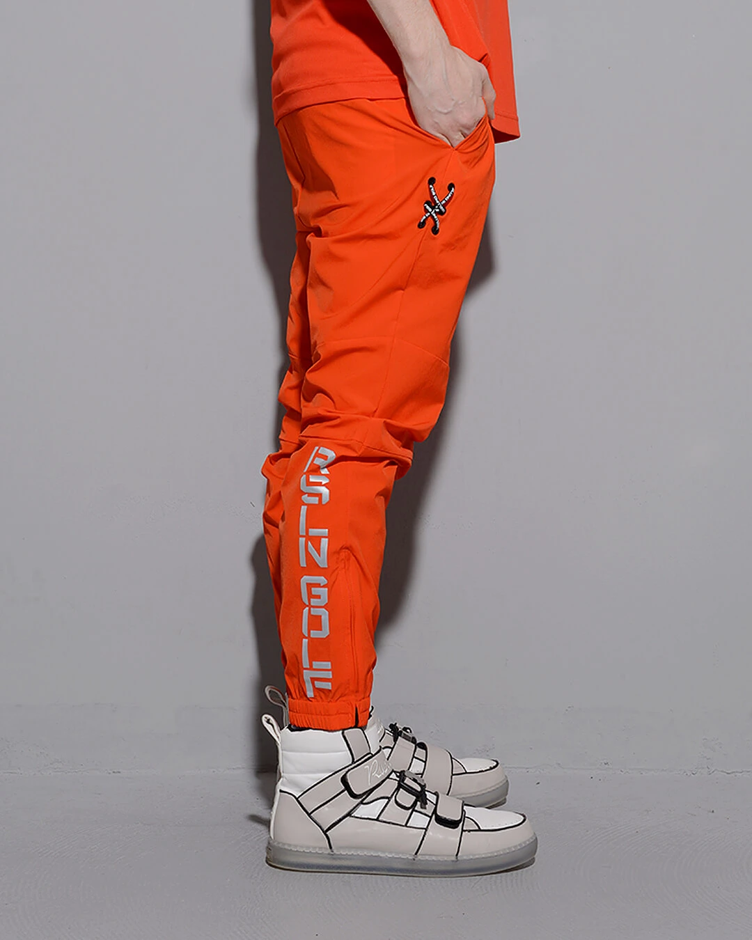 撥水加工生地を使用したシンプルなウィンドブレーカーパンツ。