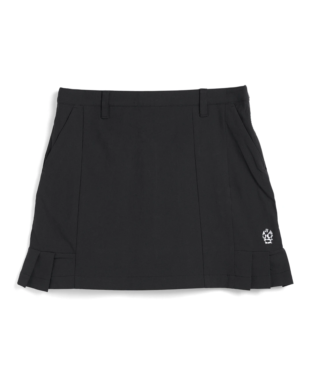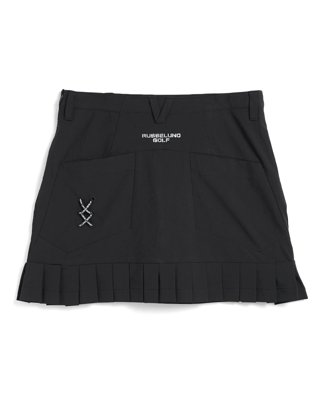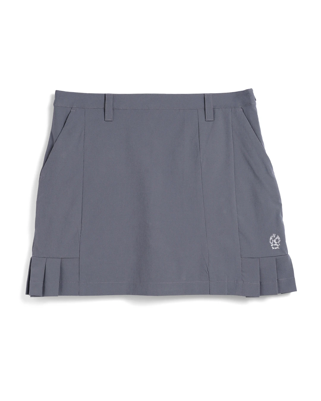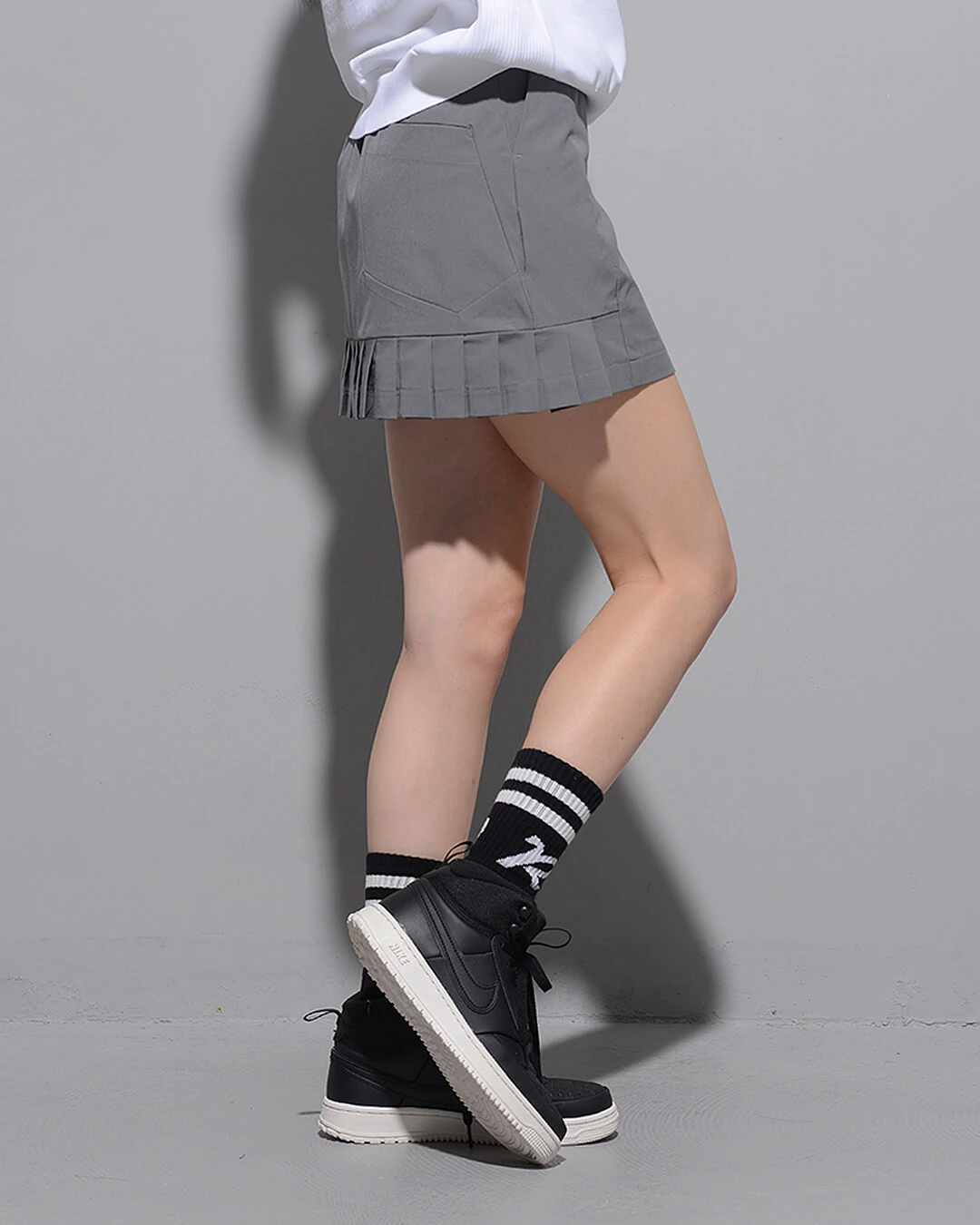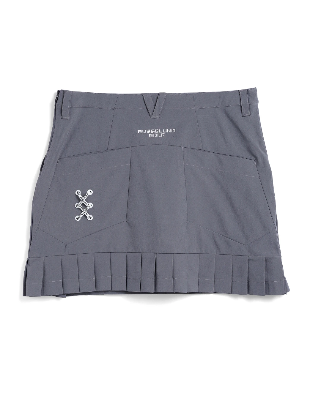 脇から後ろにかけて入れたプリーツをポイントに合わせやすいスカートに仕上げています。
