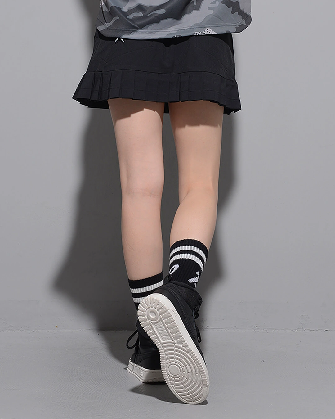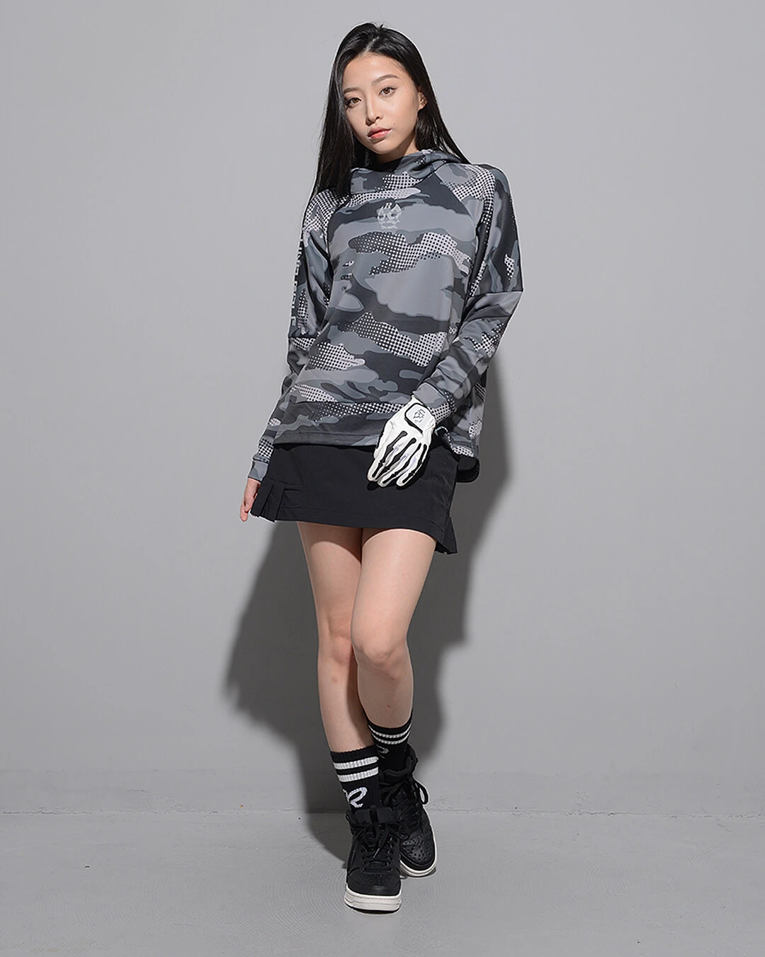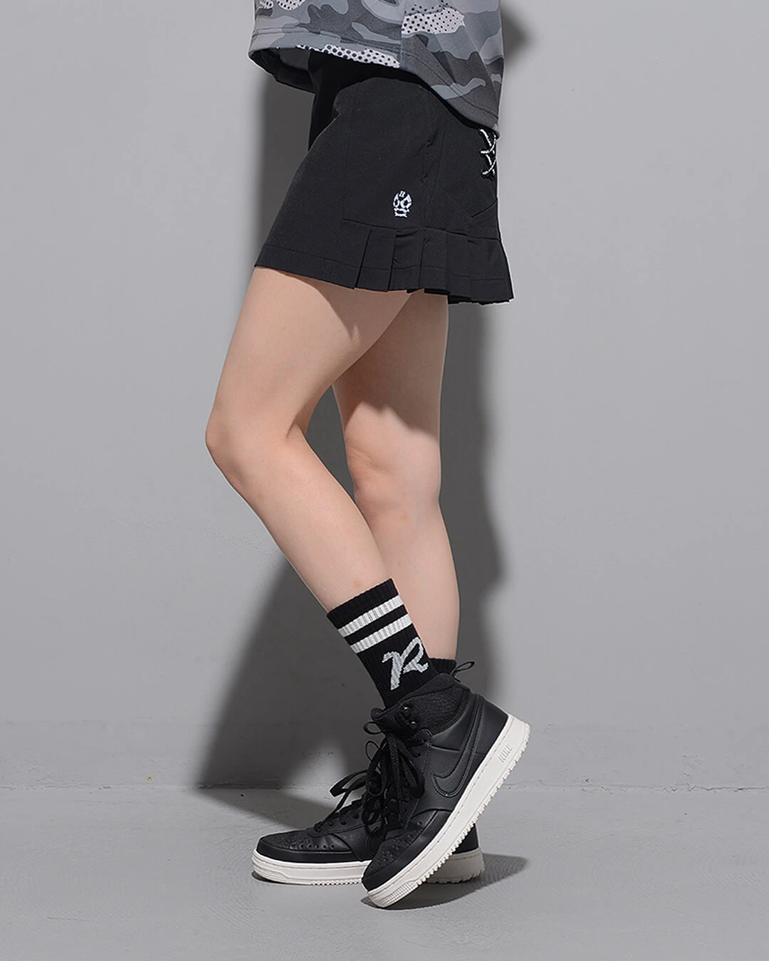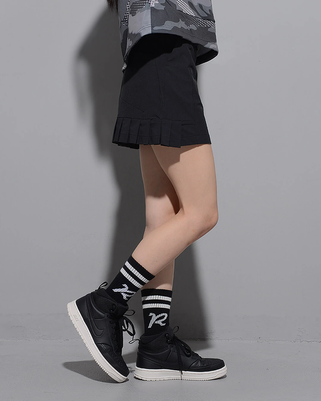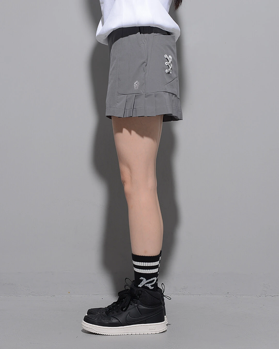 脇から後ろにかけて入れたプリーツをポイントに合わせやすいスカートに仕上げています。
