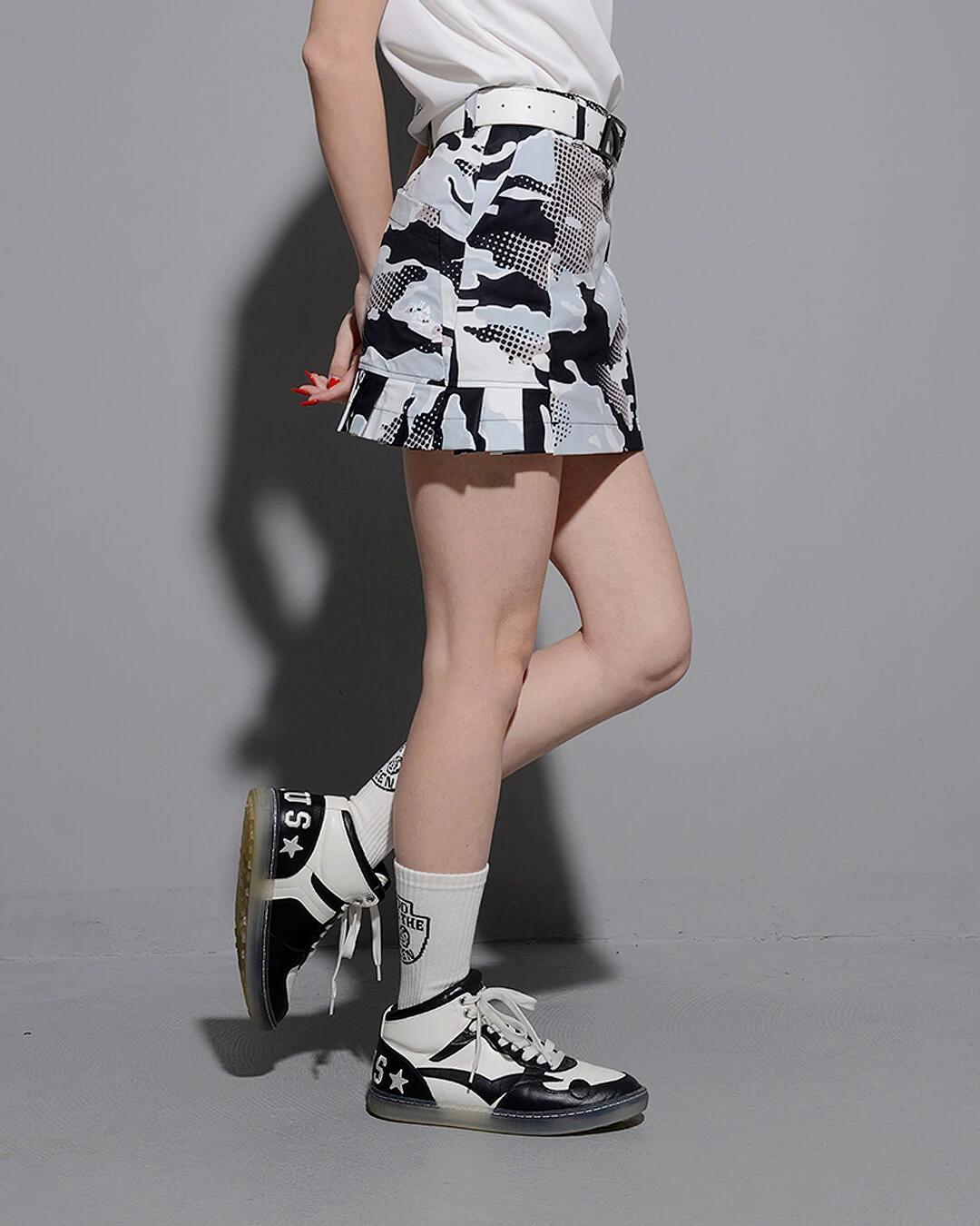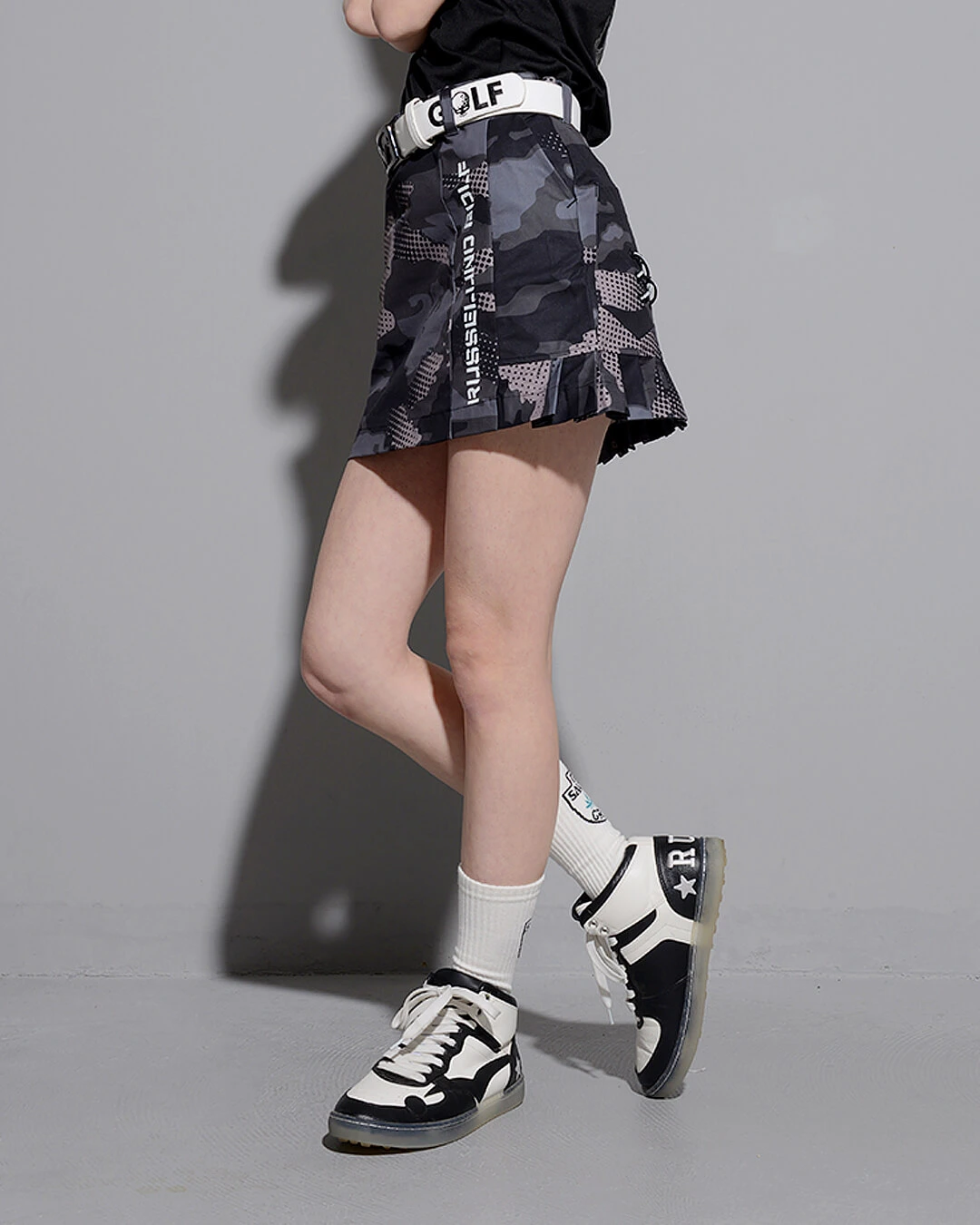 HEM PLEATS CAMO SKIRT