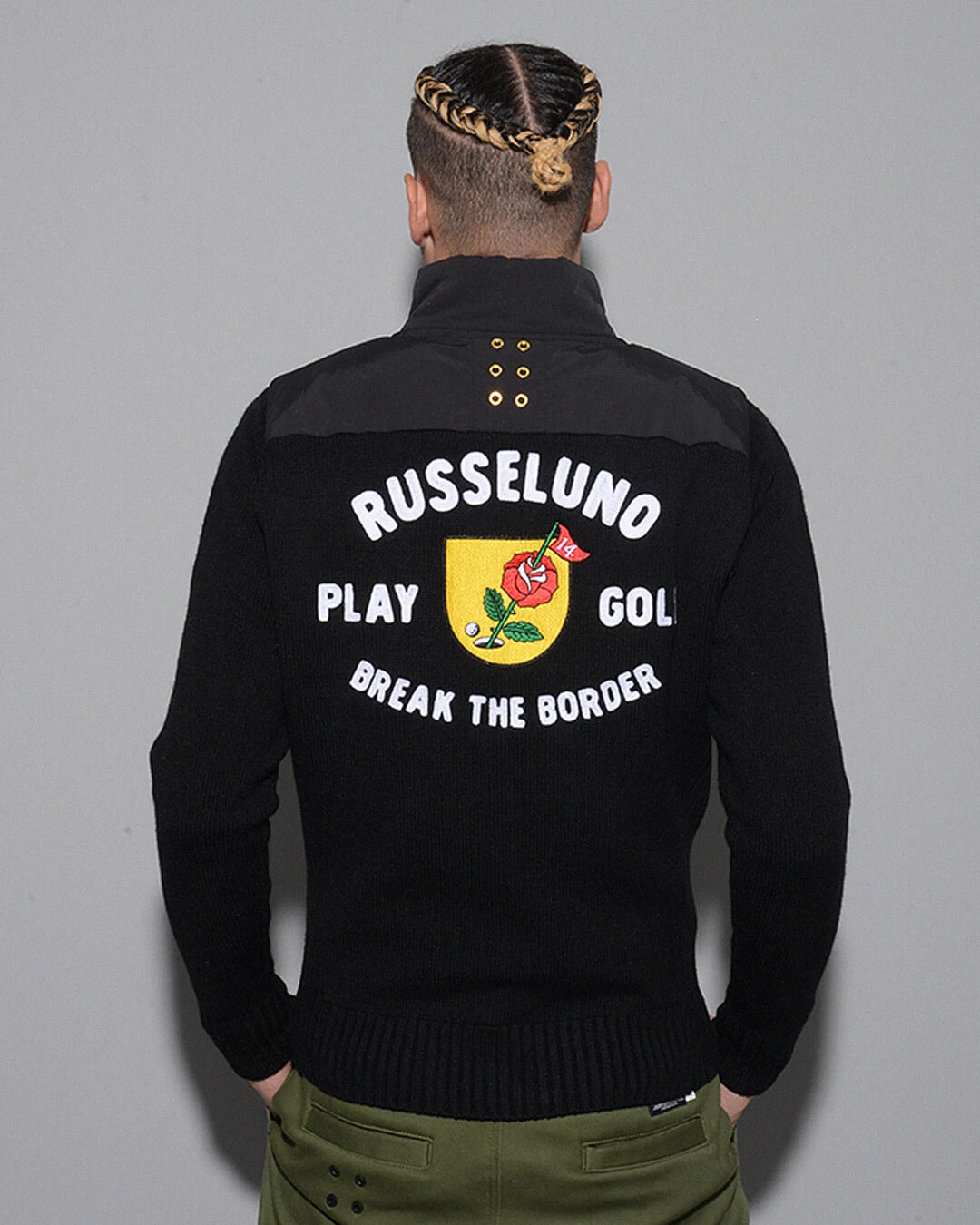 左胸のワッペン、バックピースデザインはボリュームのあるチェーン刺繍と平面刺繍を使い分け、デザインに表情を出しています。