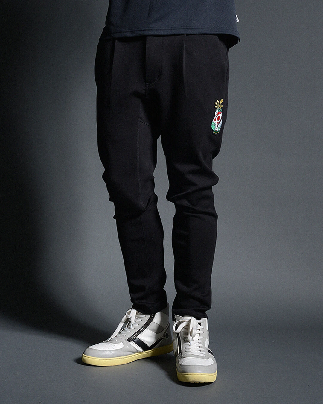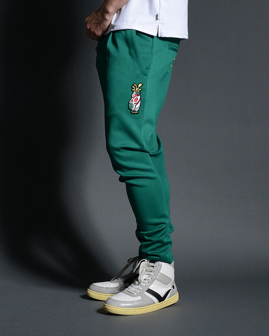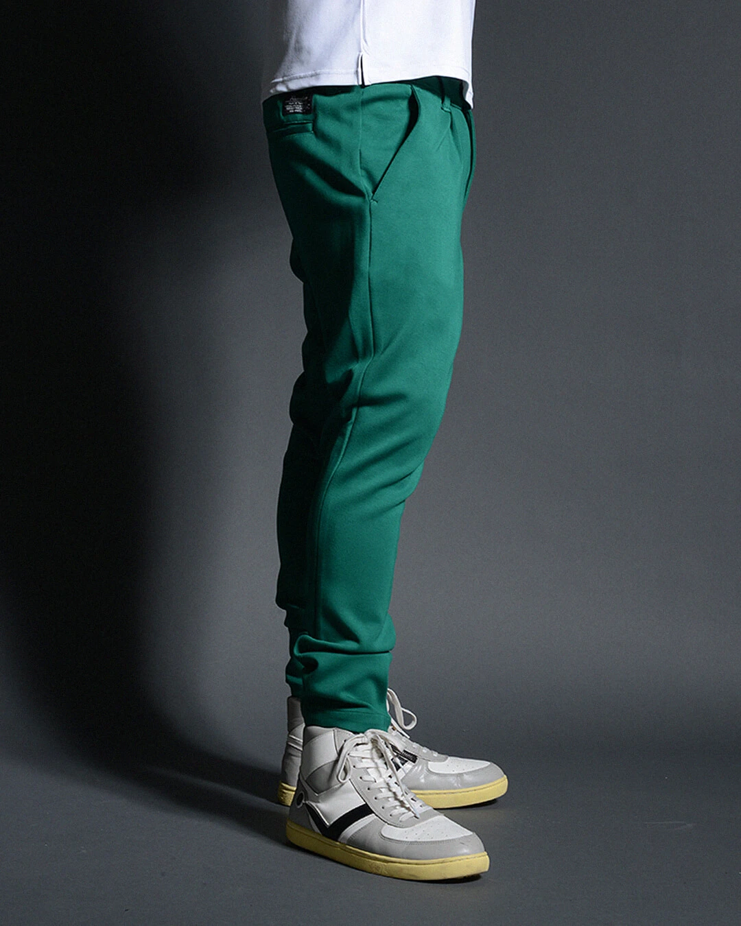 ボディーに非常に伸縮性に優れたジャージー素材を使用したスキニーシルエットパンツ。