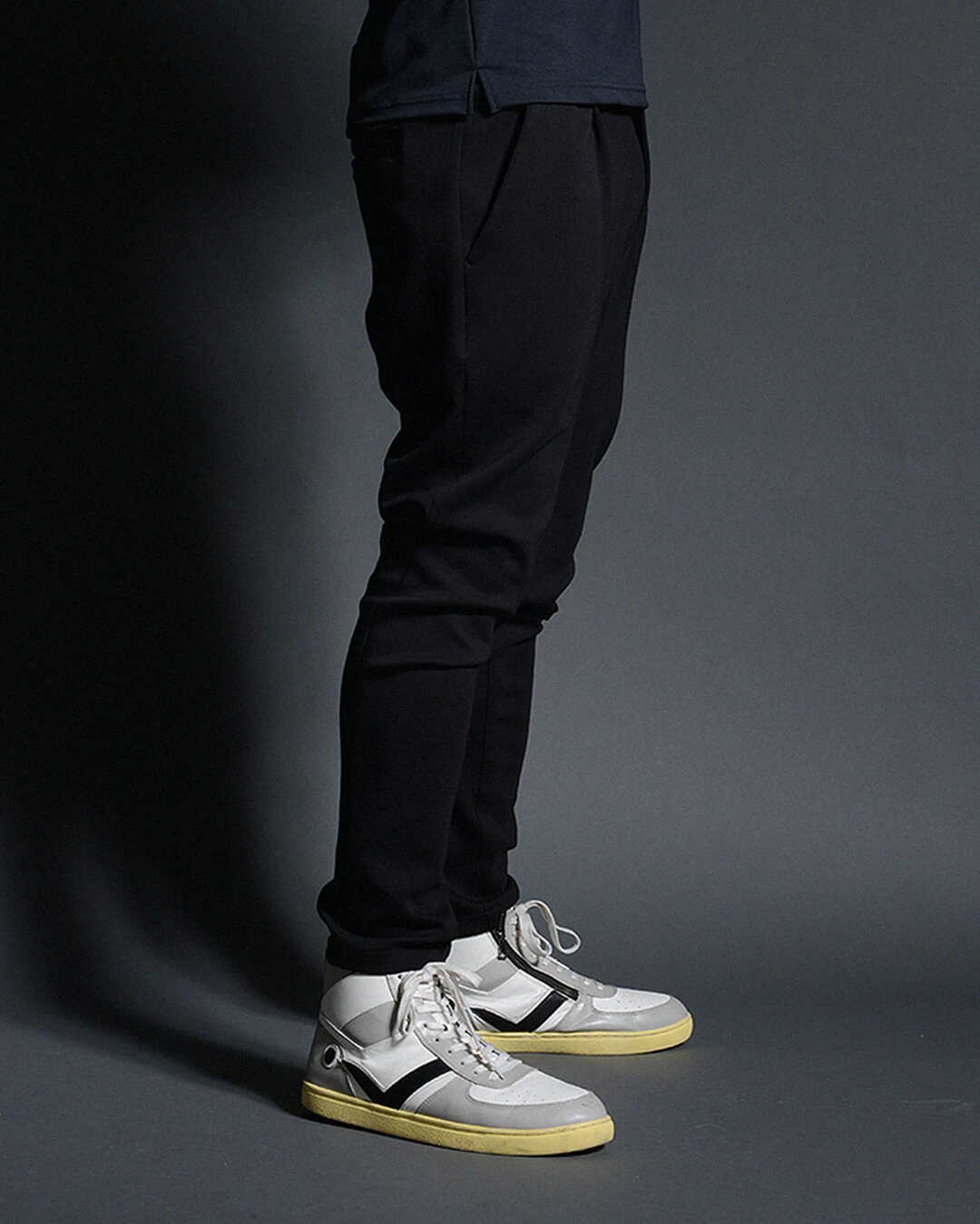 腰周りに入れたダーツで、ヒップを立体的にややゆとりを持たせながら、わたりから裾にかけスキニーシルエットでデザインされています。