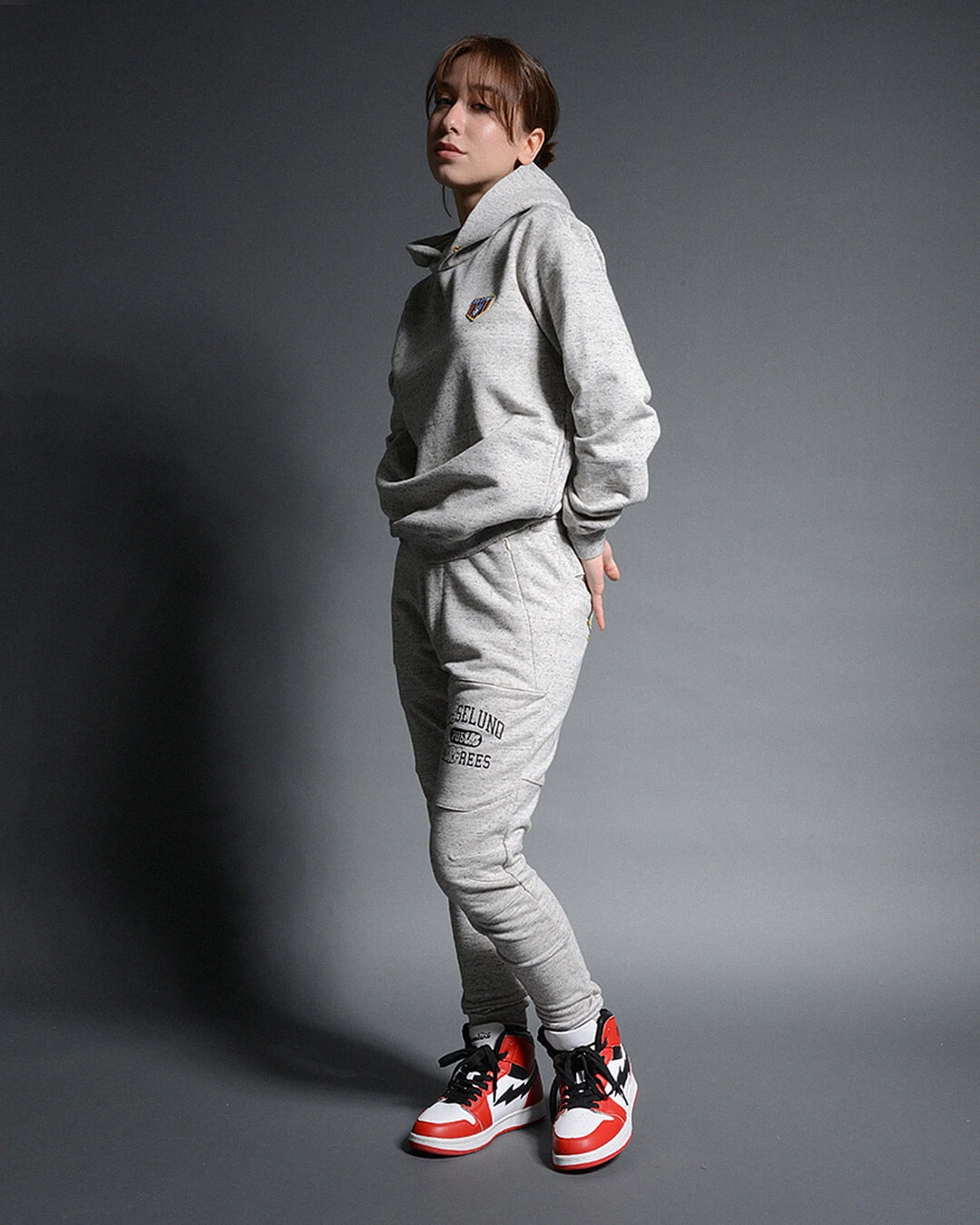 背中には、オリジナルアイレットを使用した、ブランドアイデンティティーの6ホールアイレットデザインを配しています。