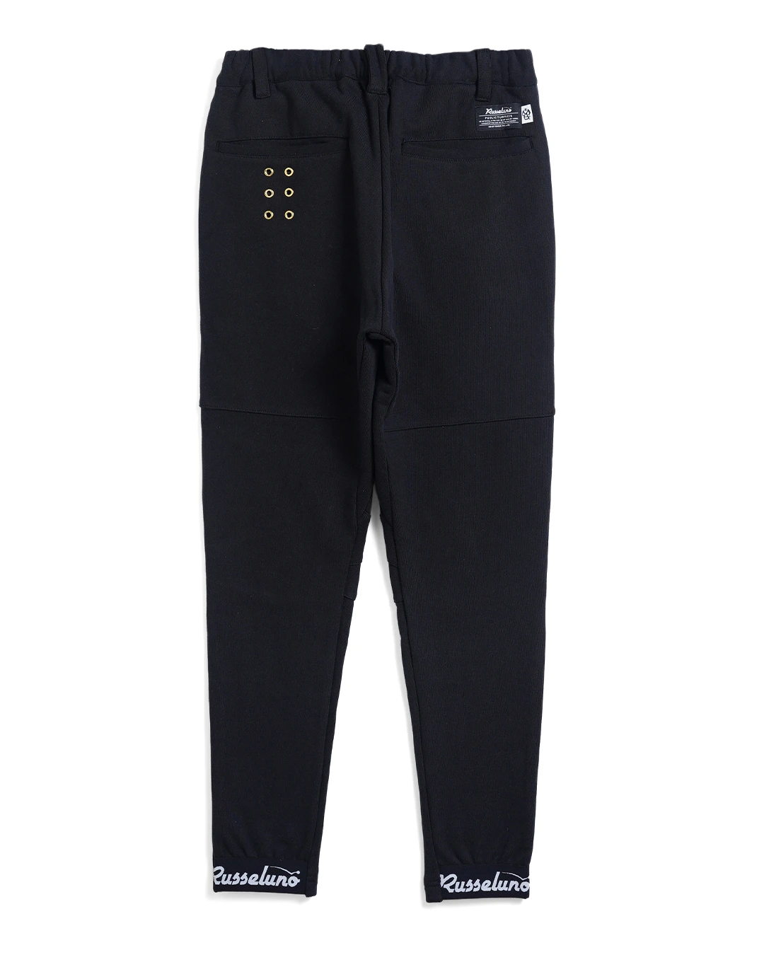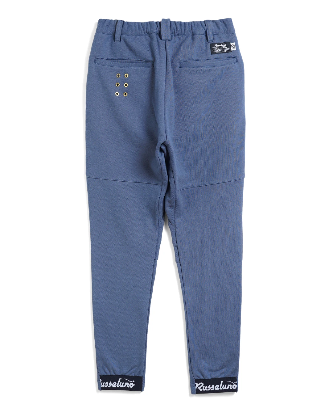 左後ろポケット下には、オリジナルアイレットを使用した、ブランドアイデンティティーの6ホールアイレットデザインを配しています。