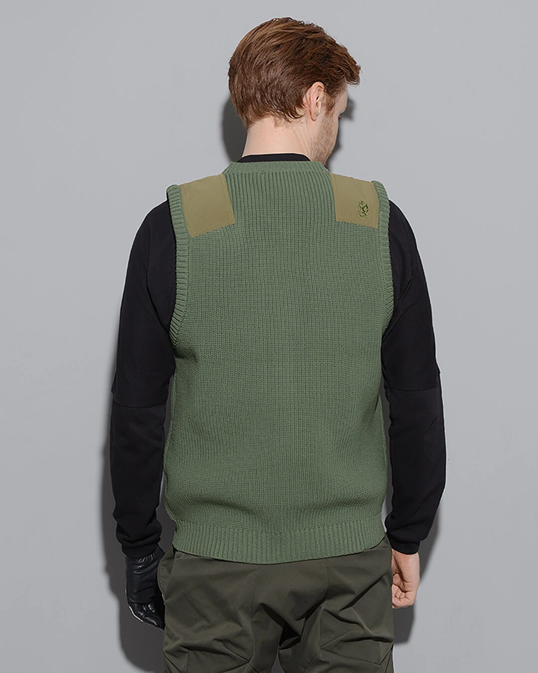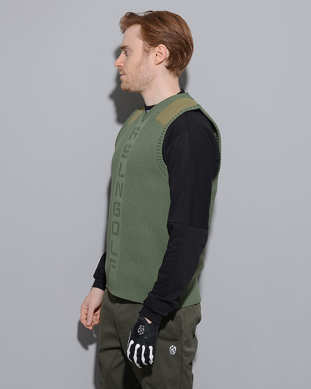 フロントのジャガードロゴをポイントにミリタリーを感じるウェアに仕上げています。