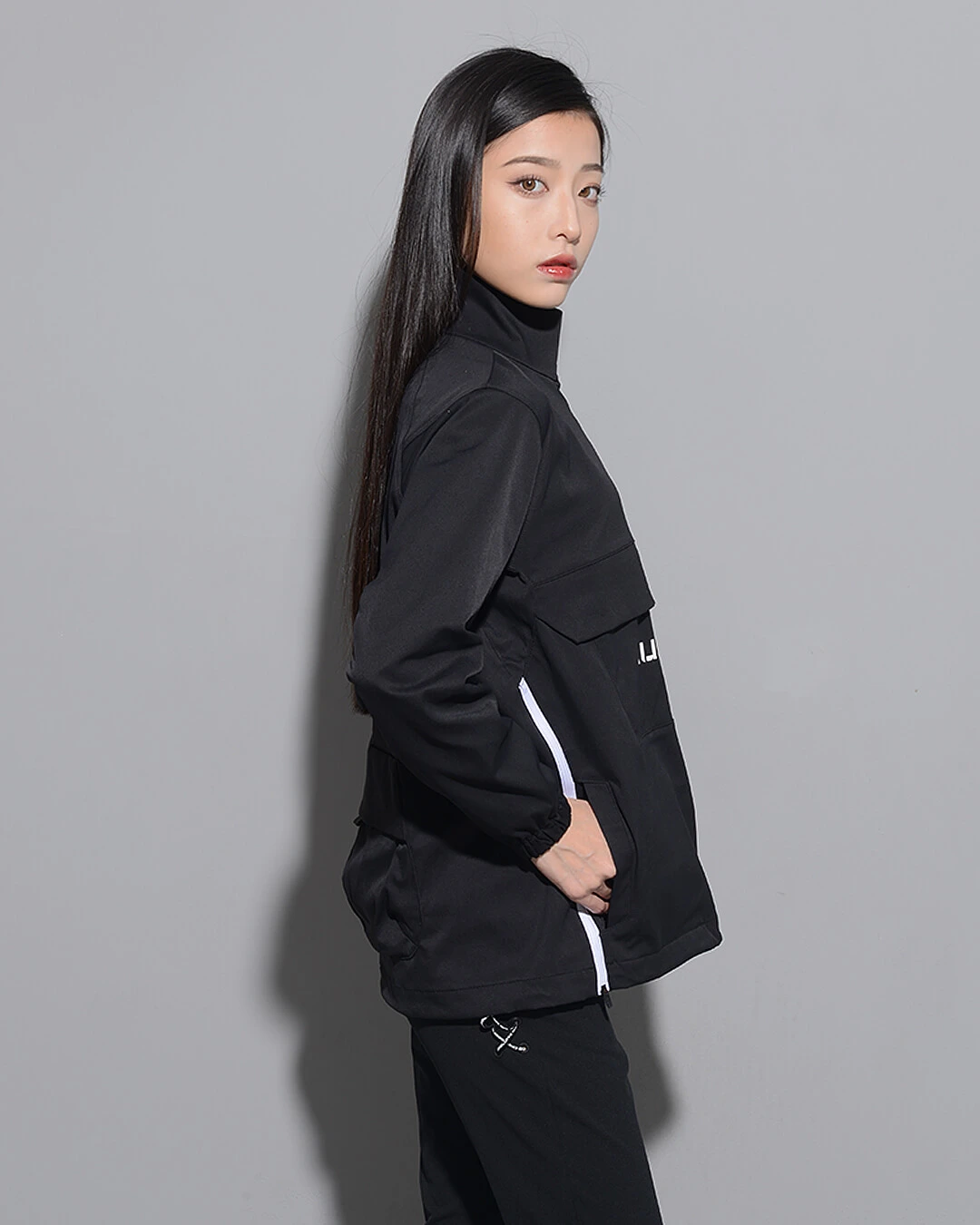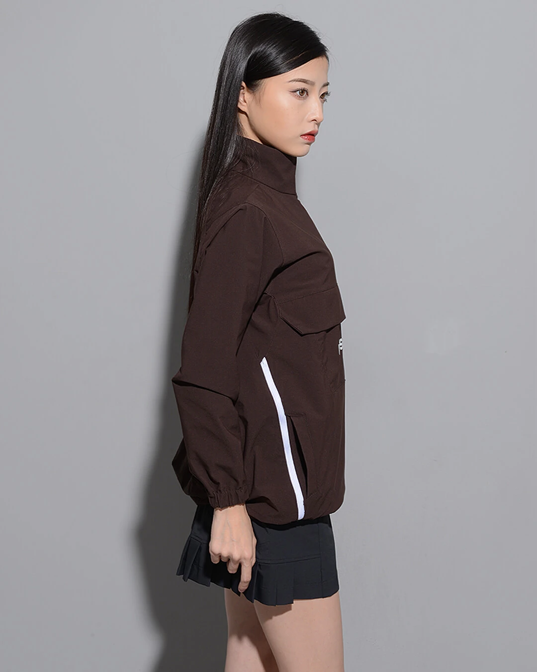 首元についたファスナーで2通りのスタイルを楽しめます。