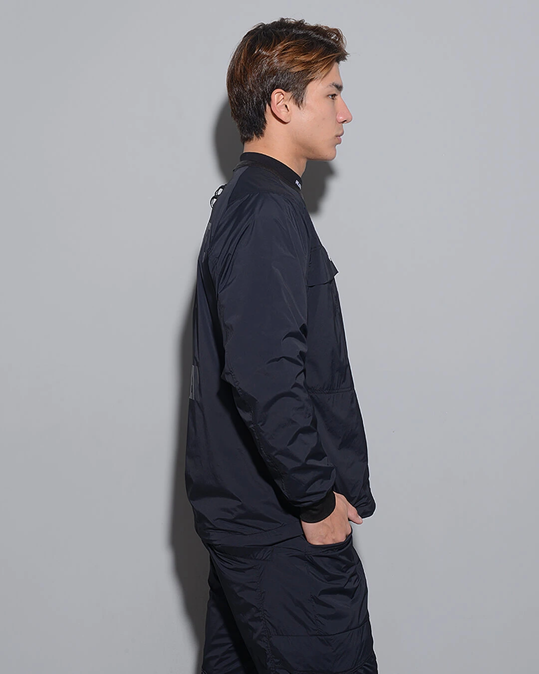 表地に高級感ある軽量の素材を使用し、裏地に起毛トリコットを使用した、軽量で暖かいウェア。