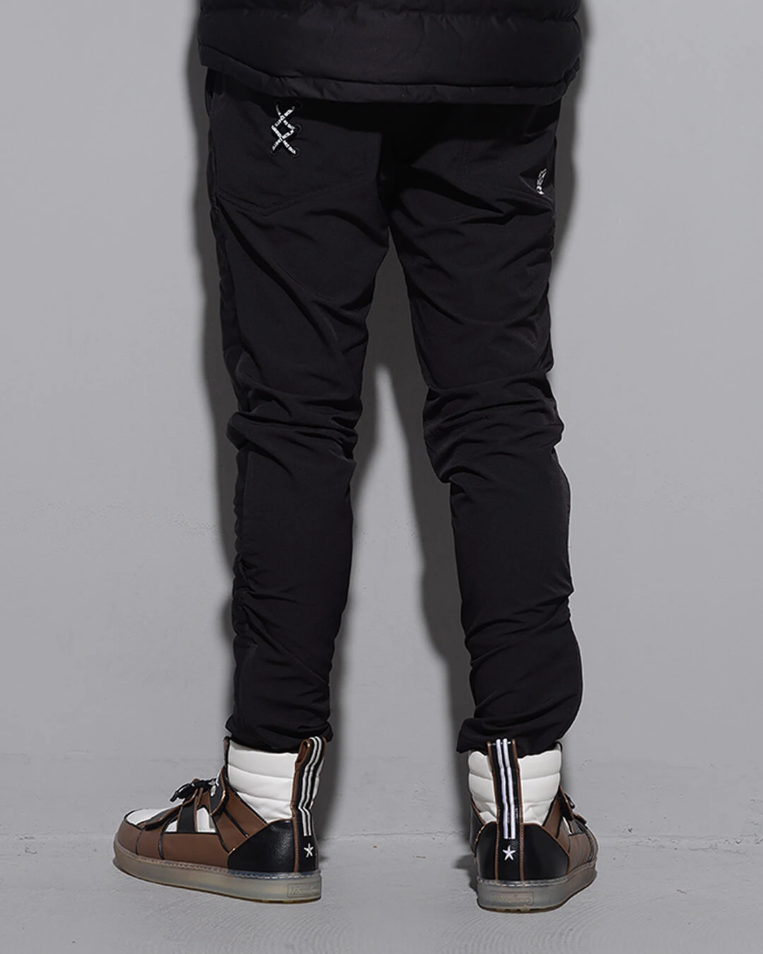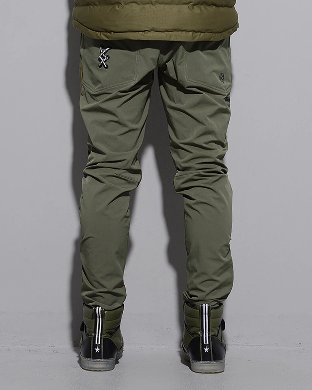 後身にはストレッチ性と保温性を兼ね備えた素材を使用し、ラウンド中の寒さから体を守ります。