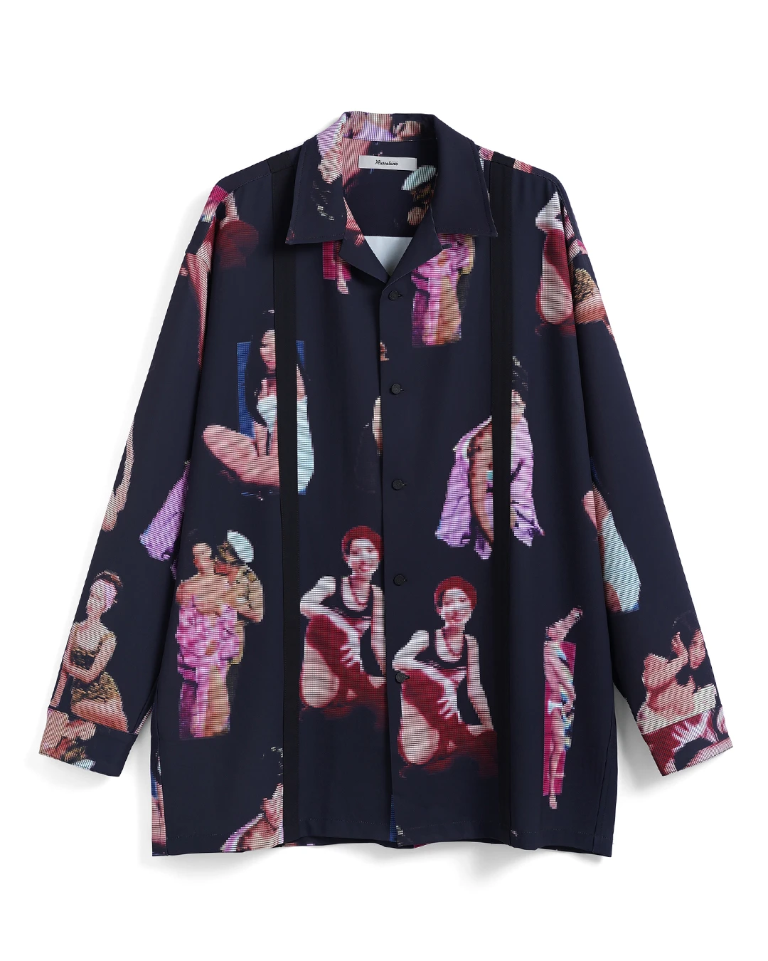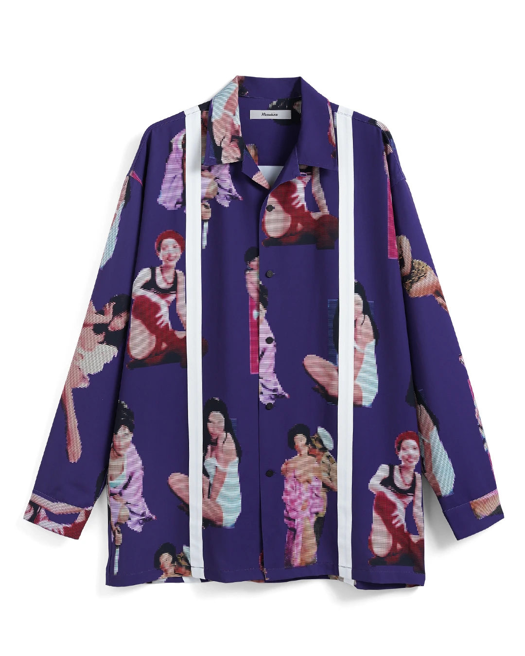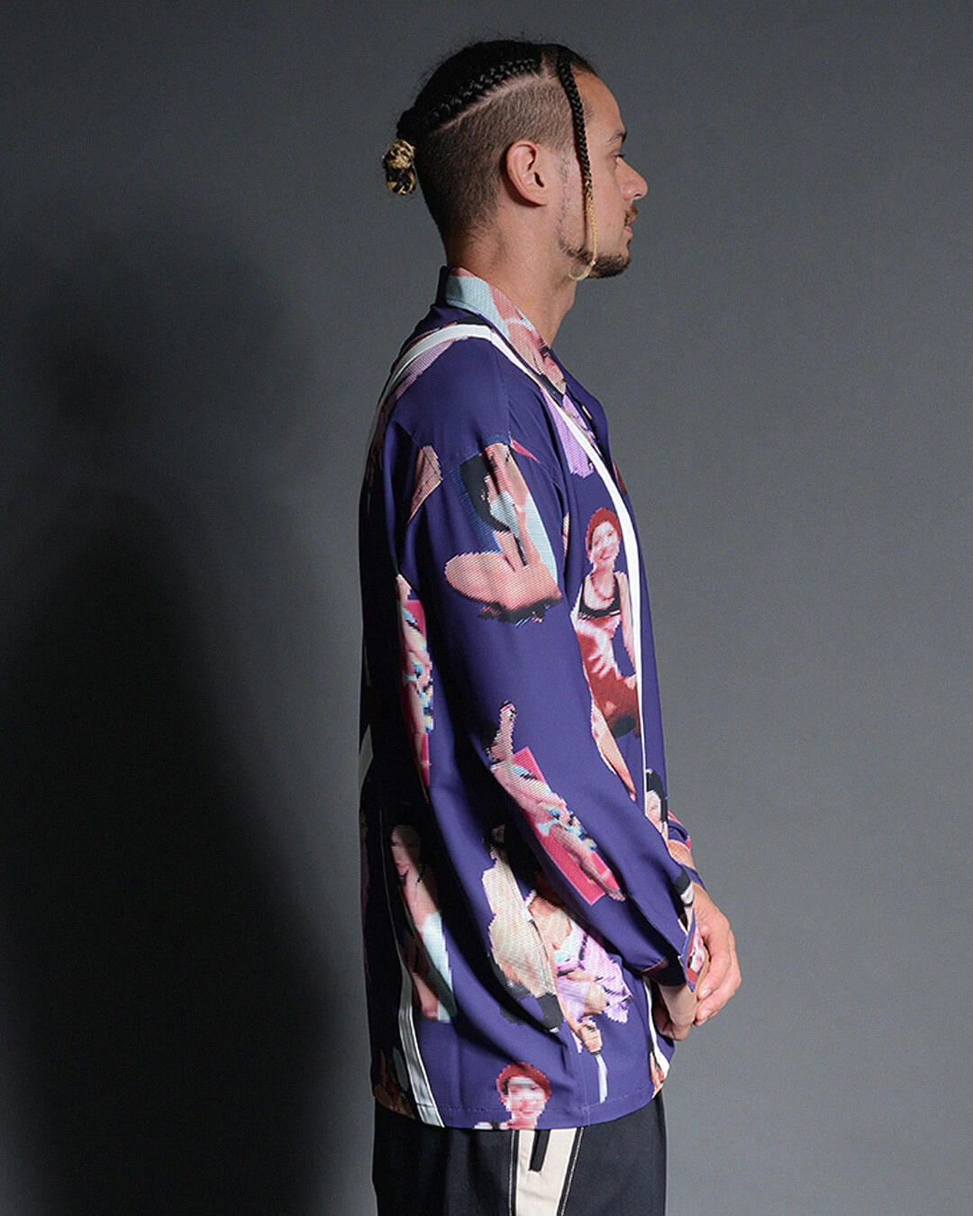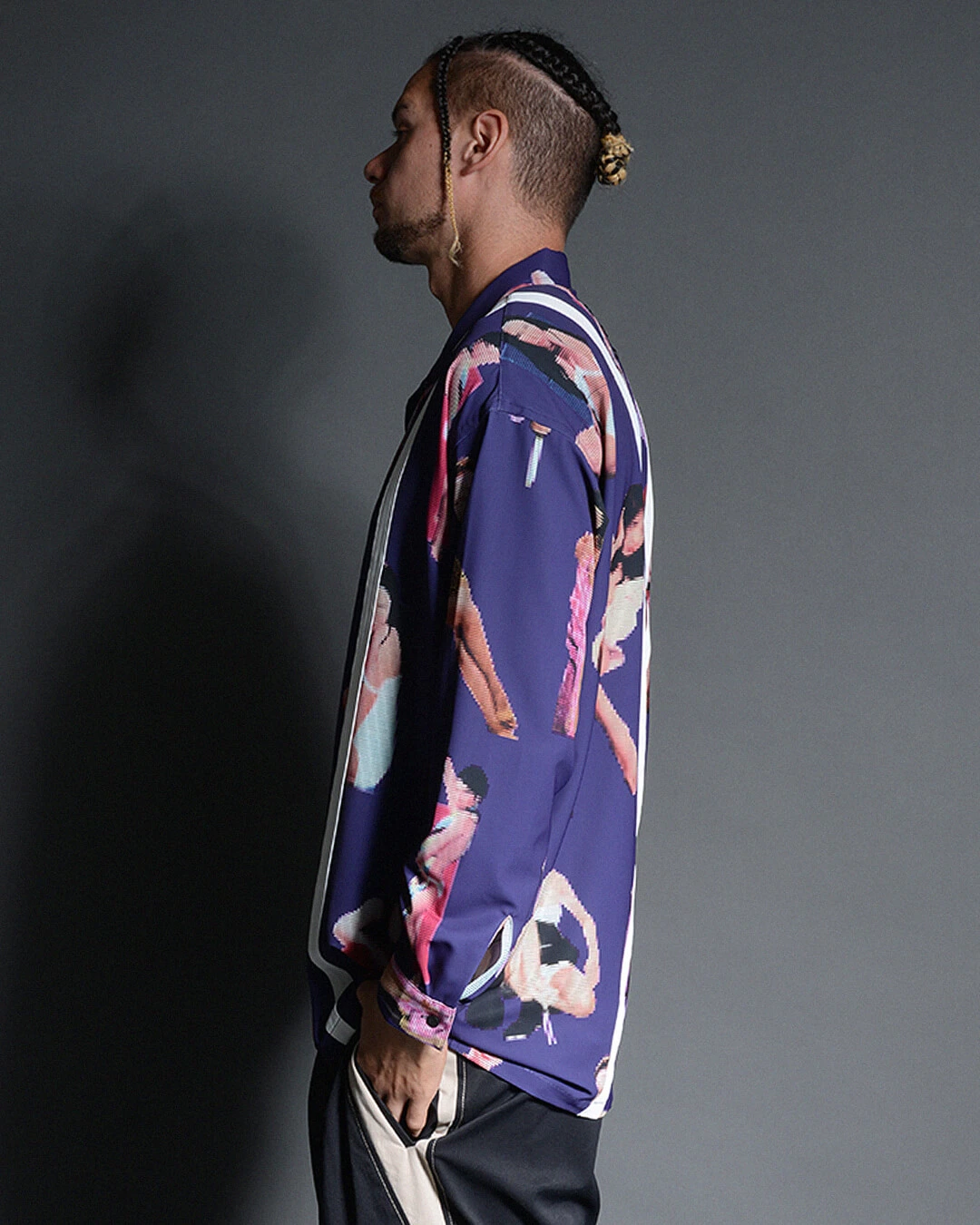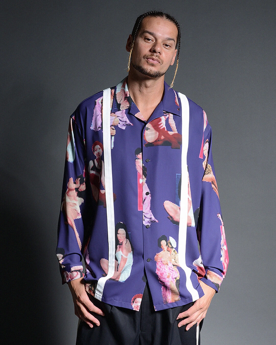 フェイクサスペンダーデザインのロングスリーブシャツ。