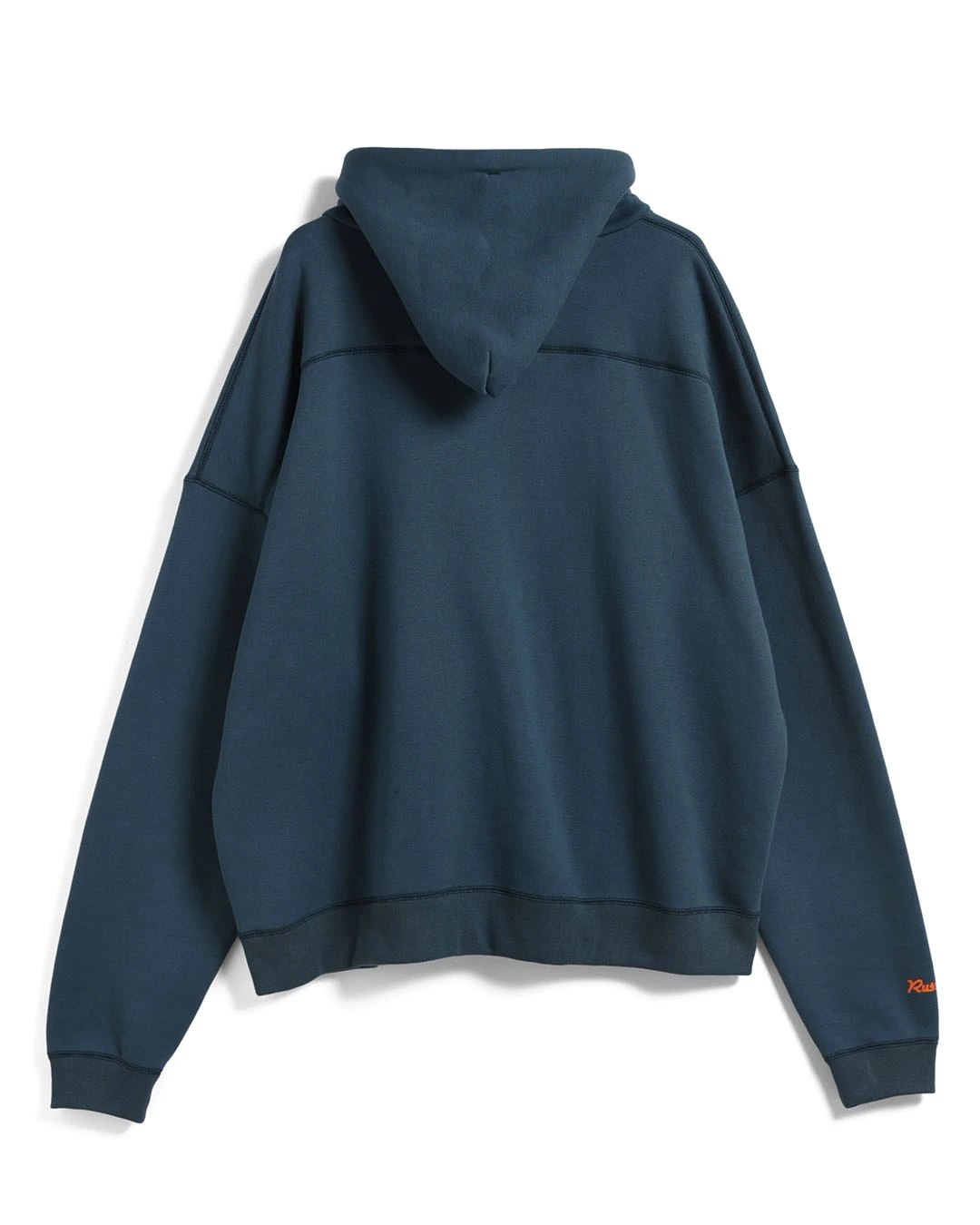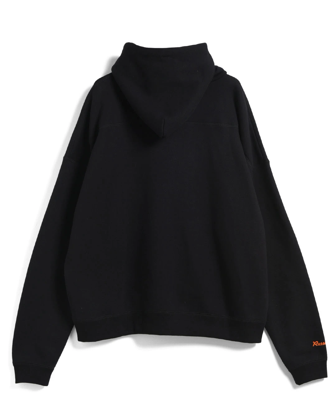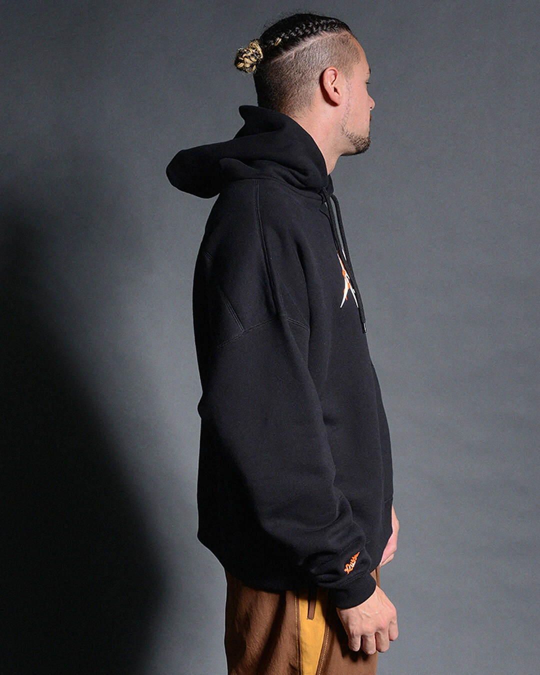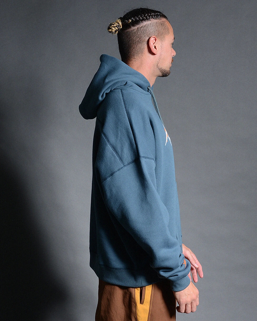 ヘビーオンスながらも、軽量なこだわりの裏起⽑スウェットをボディーに採⽤したフードパーカー。