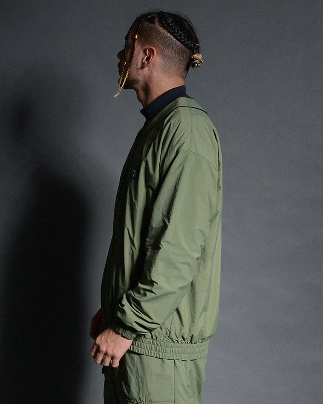 軽量かつ撥⽔性に優れたタフタ⽣地をボディーに採⽤したプルオーバーブルゾン。