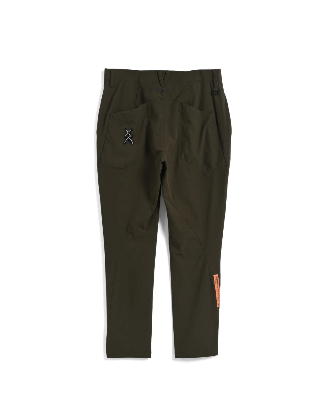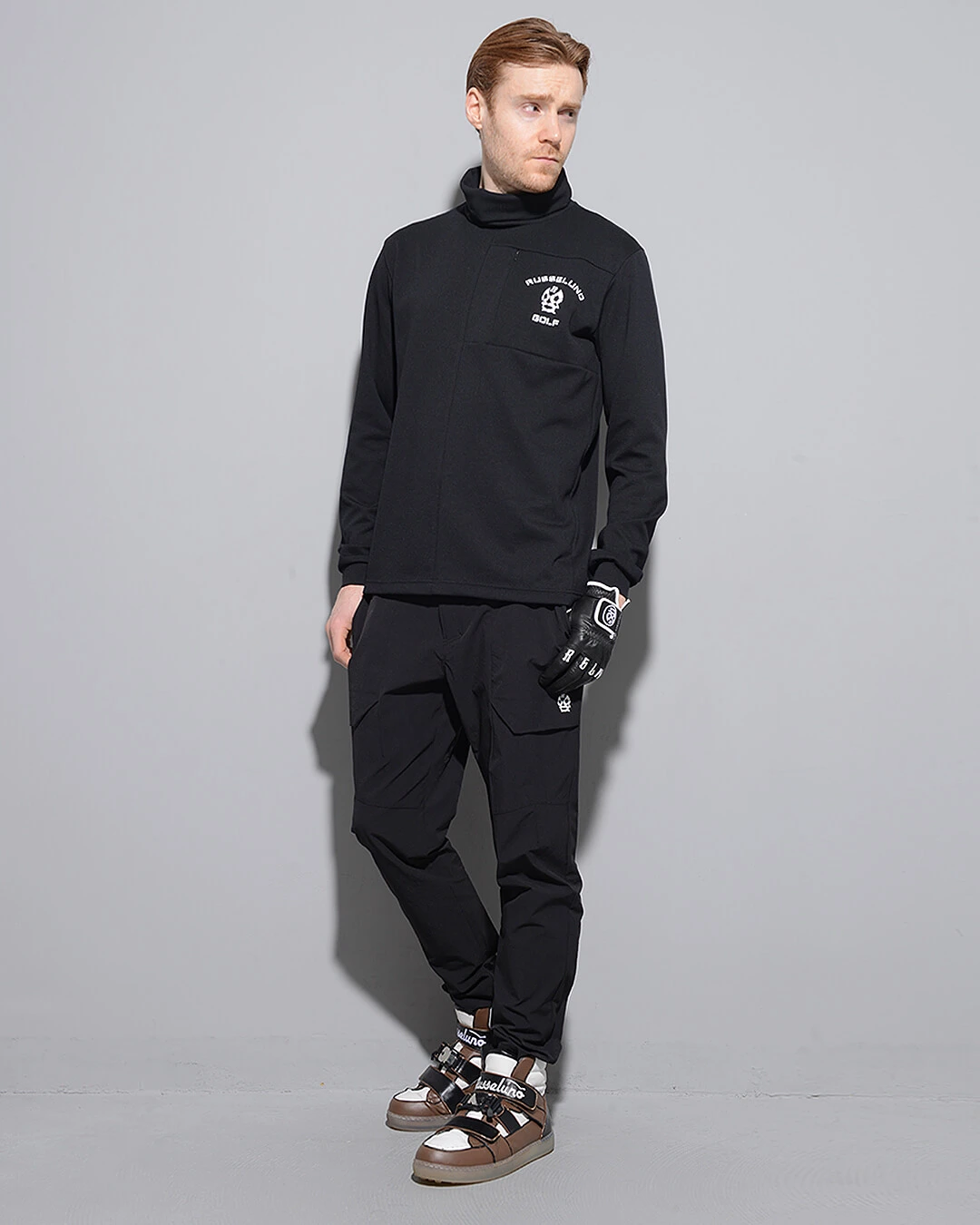 特徴的なフロントのポケットをアクセントにし、バックセンターのシームをなくす為にオリジナルのストレッチパーツをパターンメイクしております。