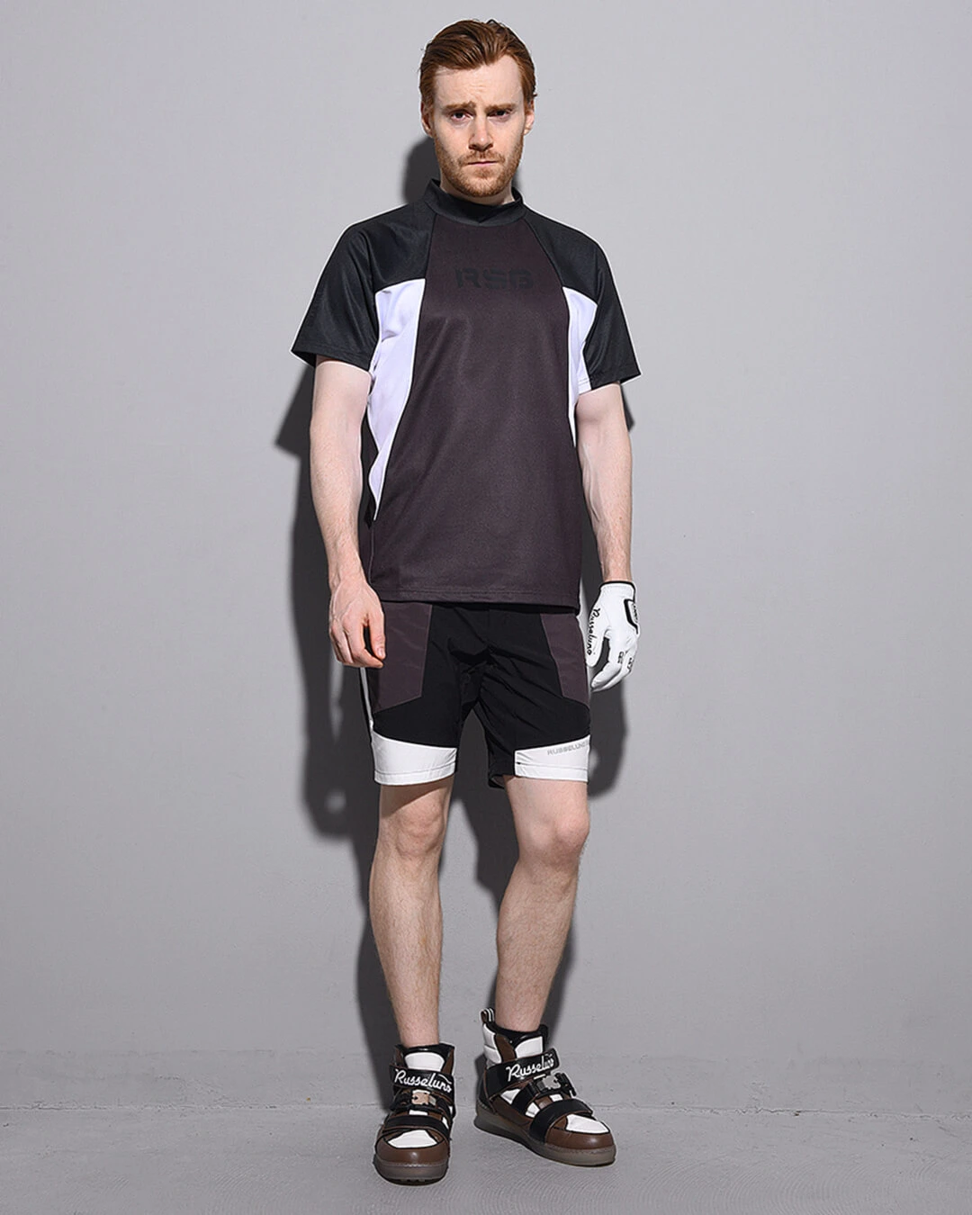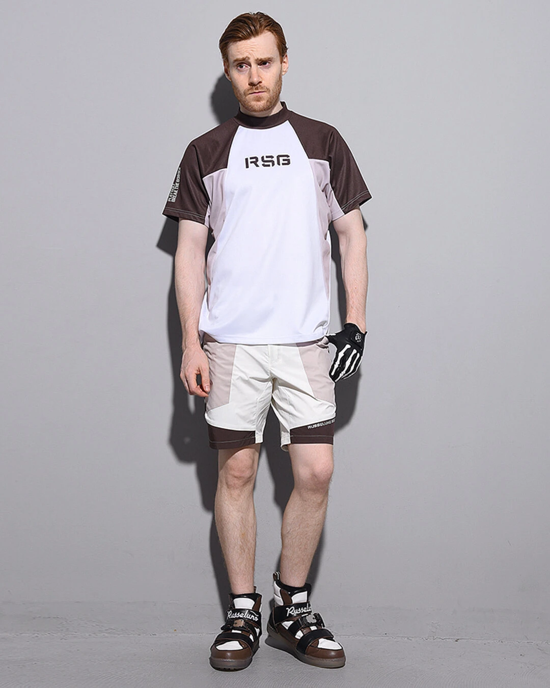 スイング時の動きを考慮したカットラインをデザインし、パーツをマルチ配色にすることでオリジナリティーあるウェアに仕上げました。