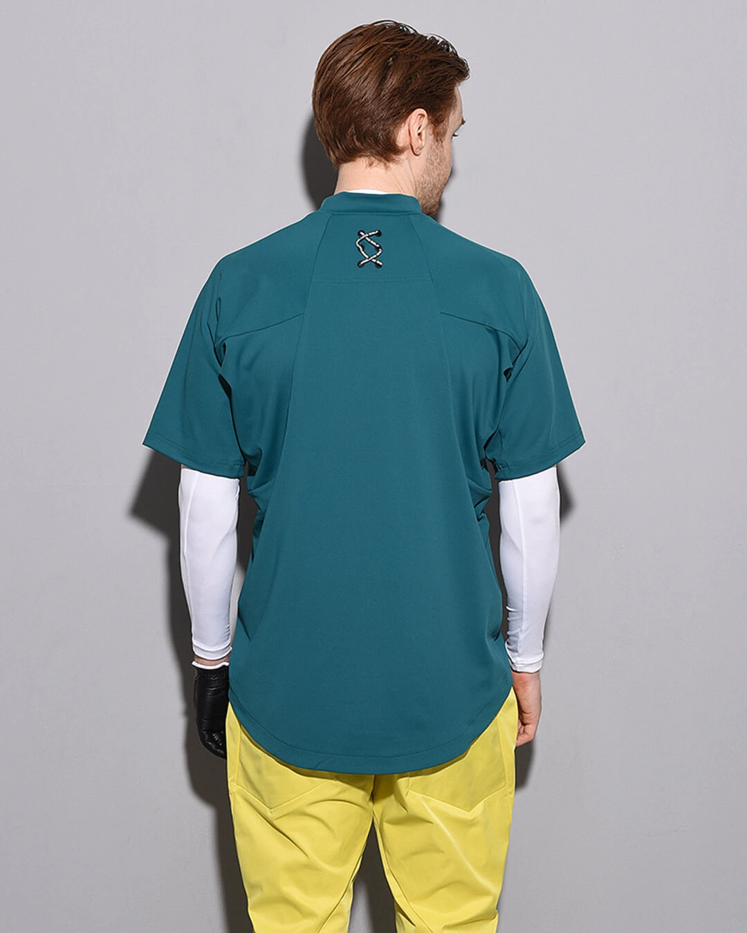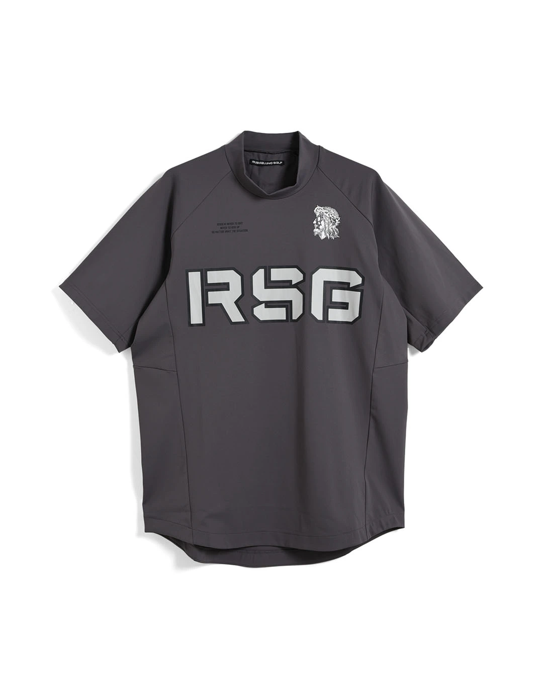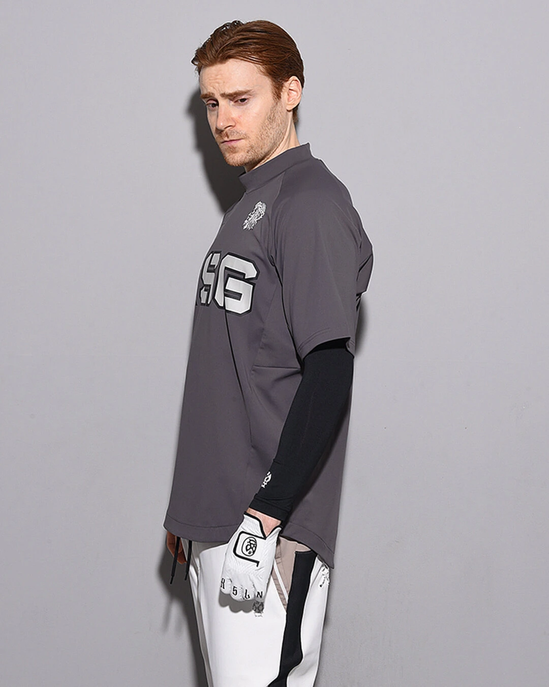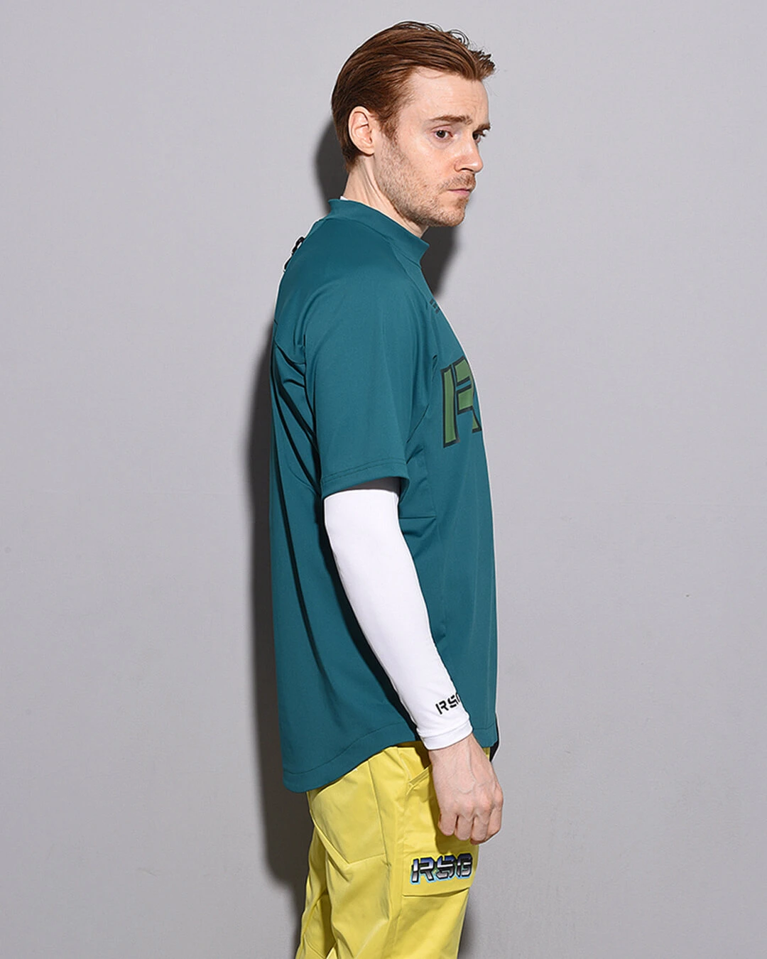 吸汗速乾性に優れたドライ素材をボディーに使⽤したショートスリーブモックネック。