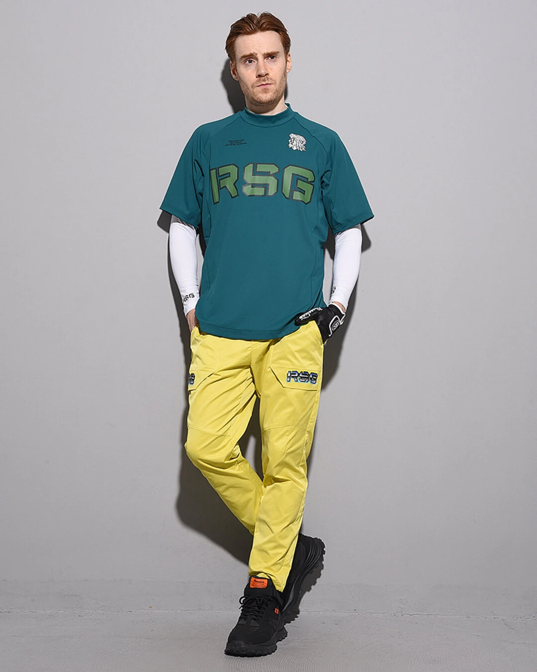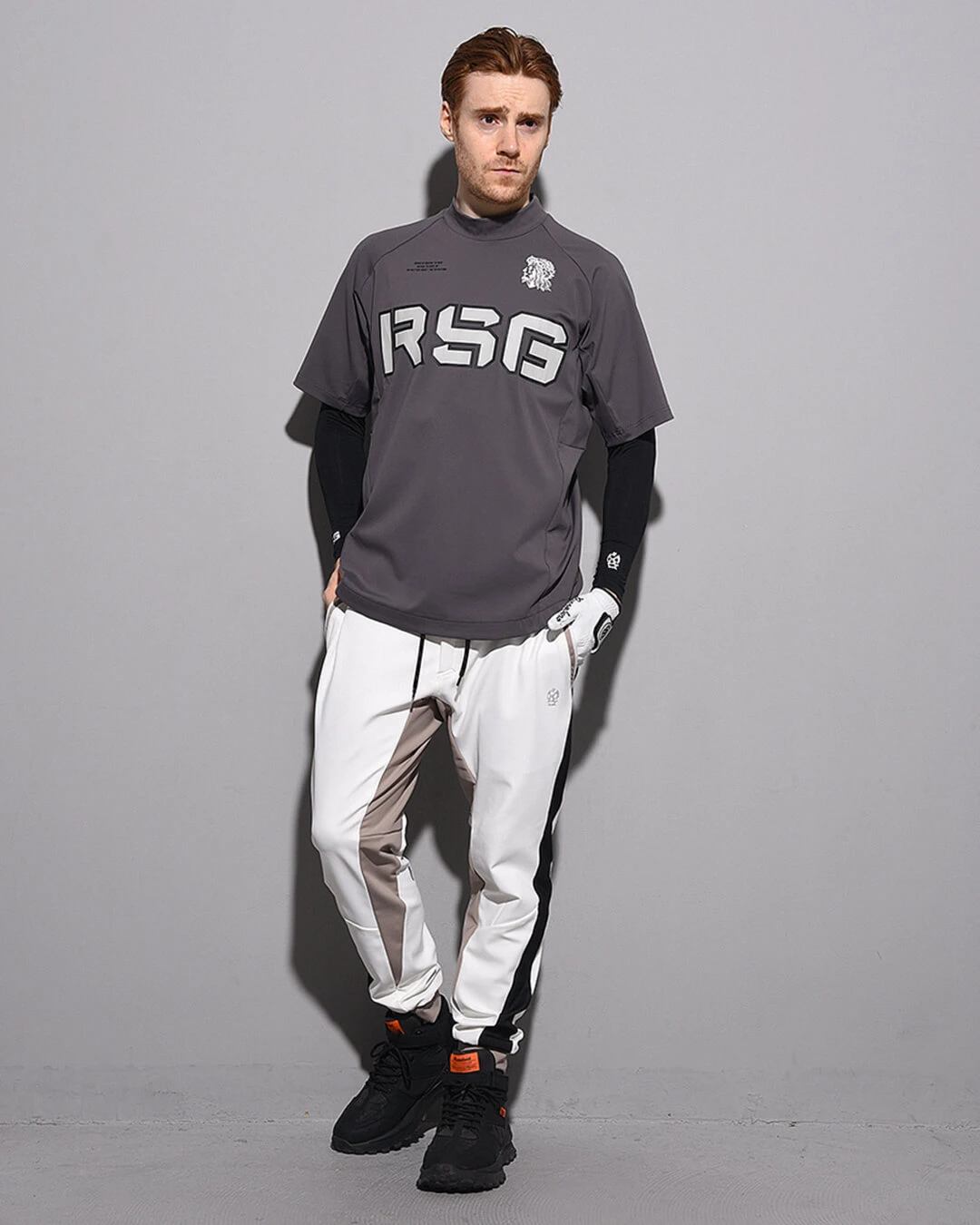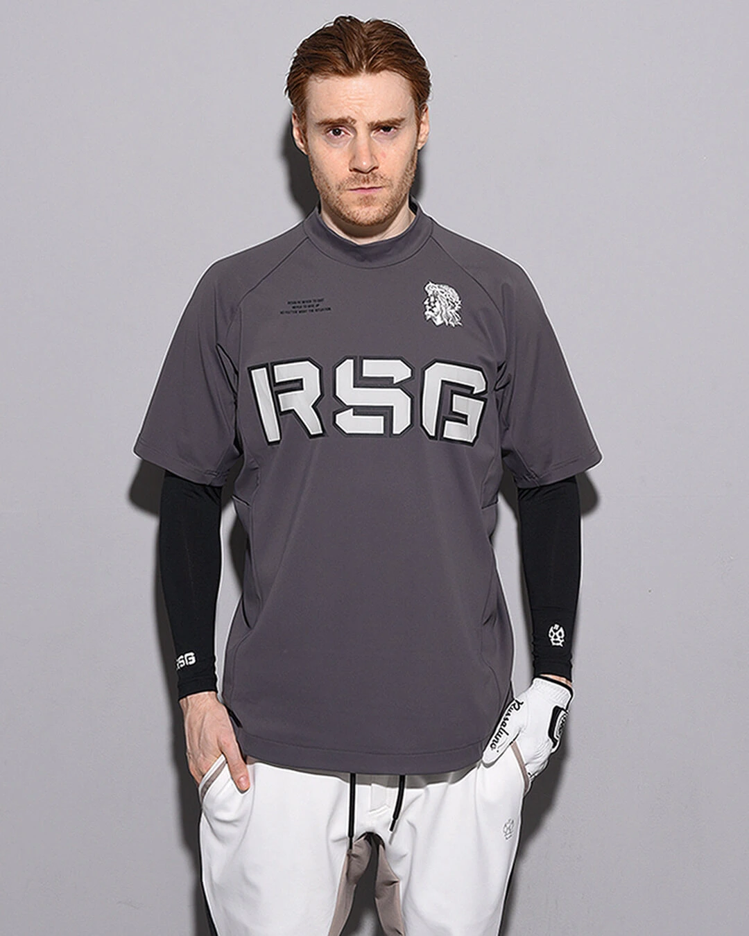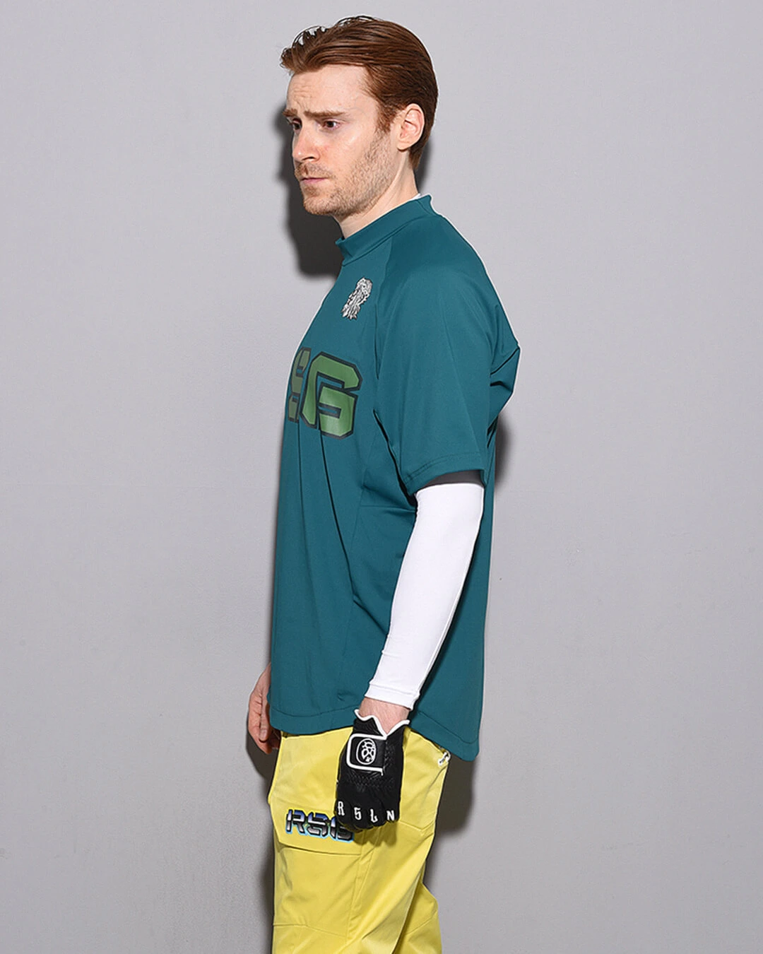 吸汗速乾性に優れたドライ素材をボディーに使⽤したショートスリーブモックネック。