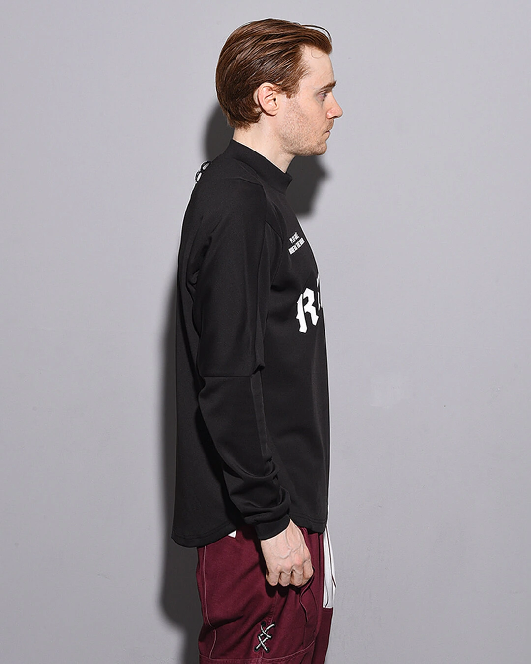 吸汗速乾性に優れた薄⼿の軽量ポンチをボディーに使⽤したロングスリーブモックネック。