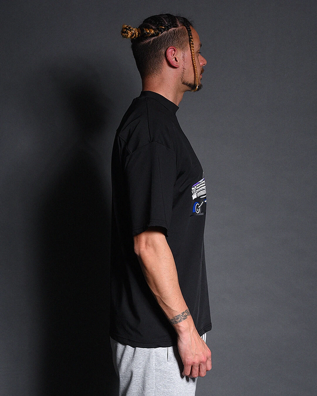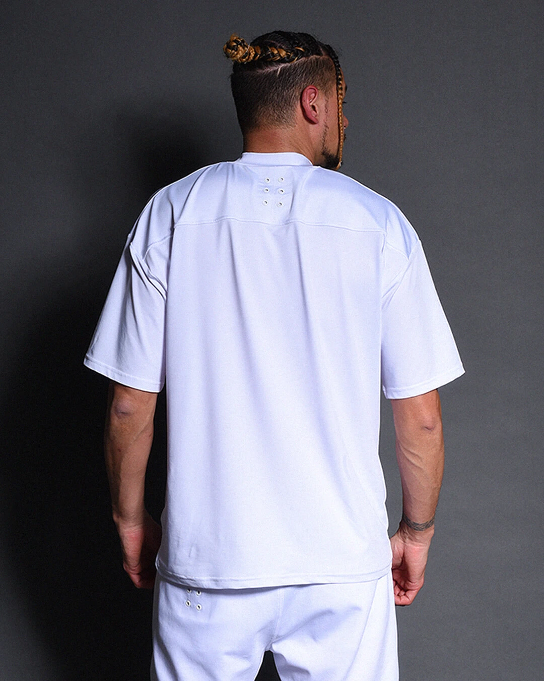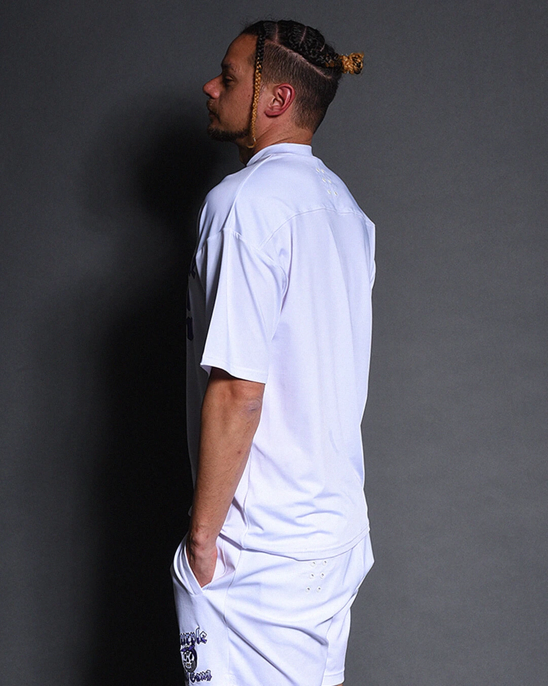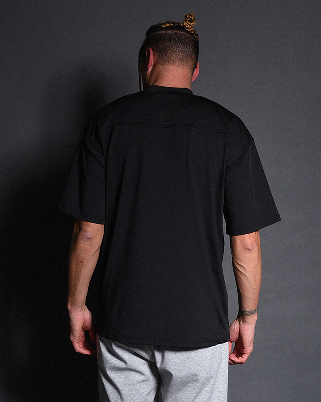 圧倒的な伸縮性と、速乾性にも優れた素材感、適度なオチ感でルーズフィットシルエットながらすっきりとした印象にみせます。