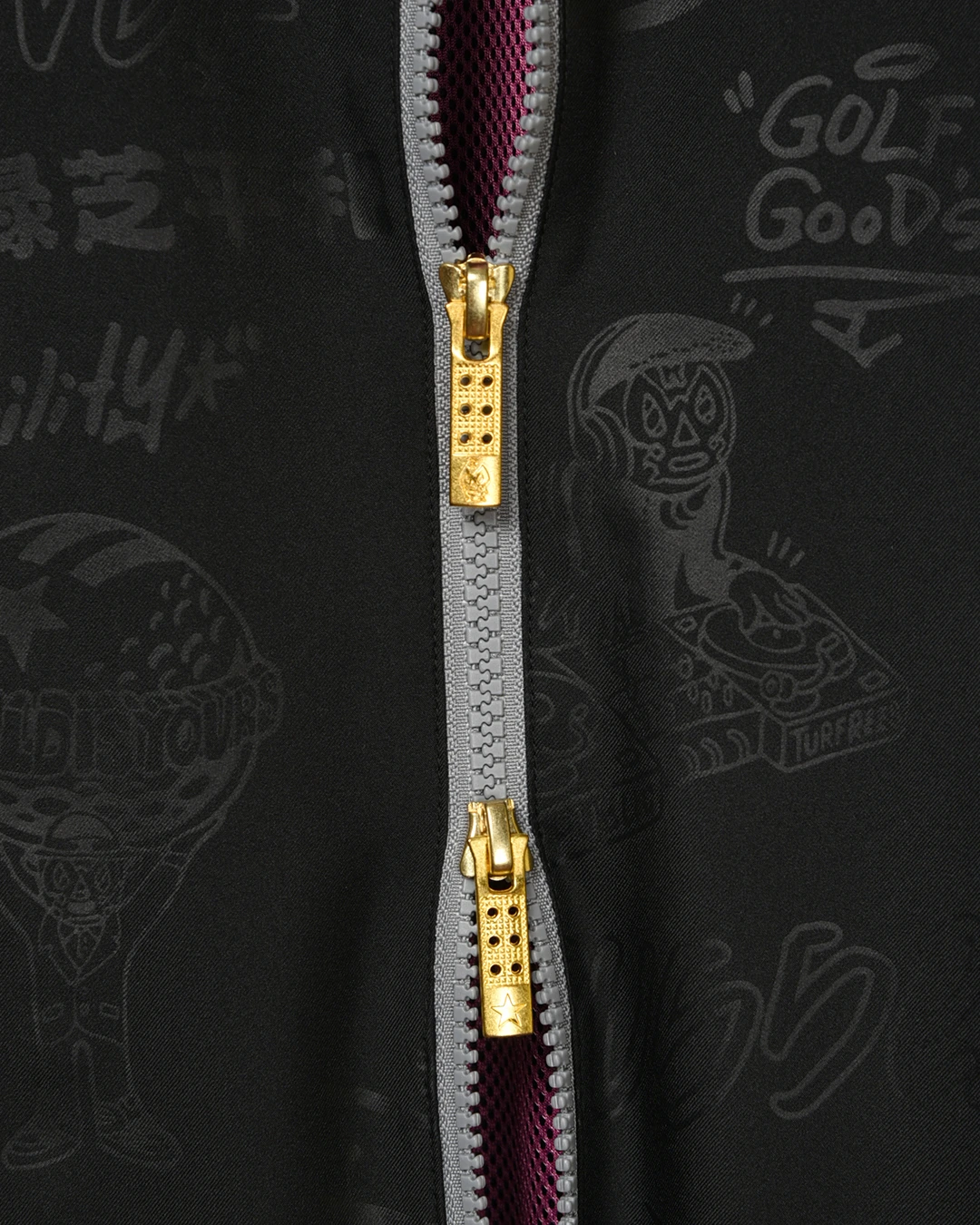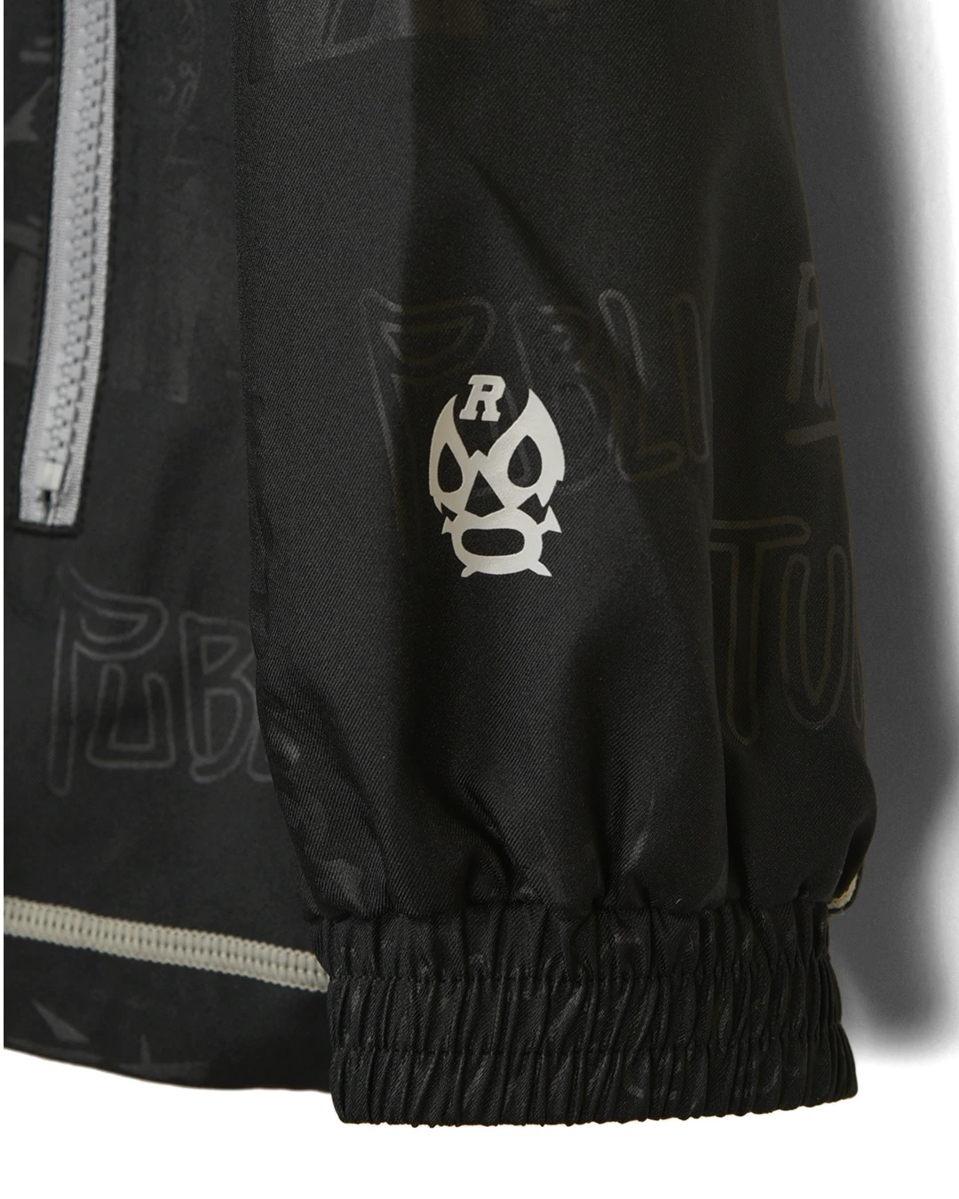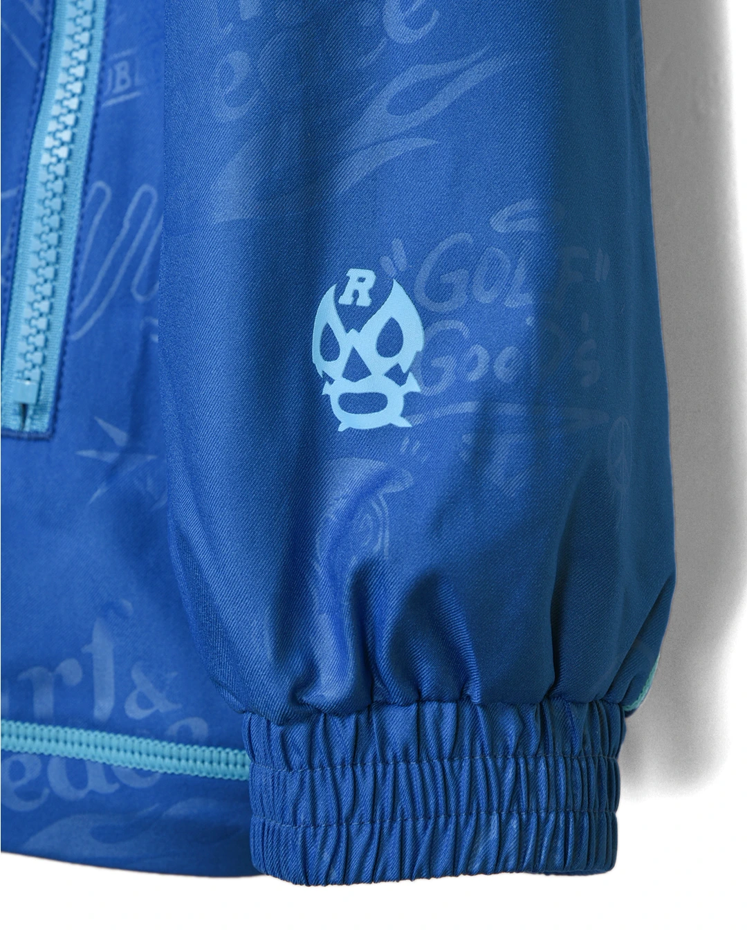 フロントファスナースライダーには、ルチャマスクの刻印が入ります。