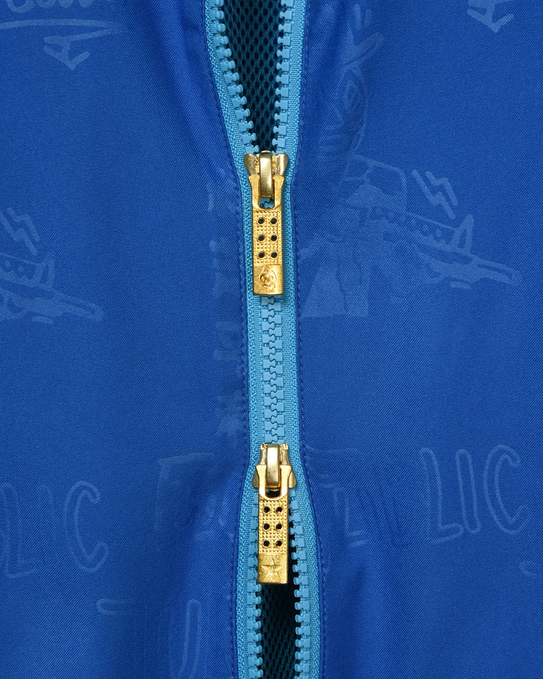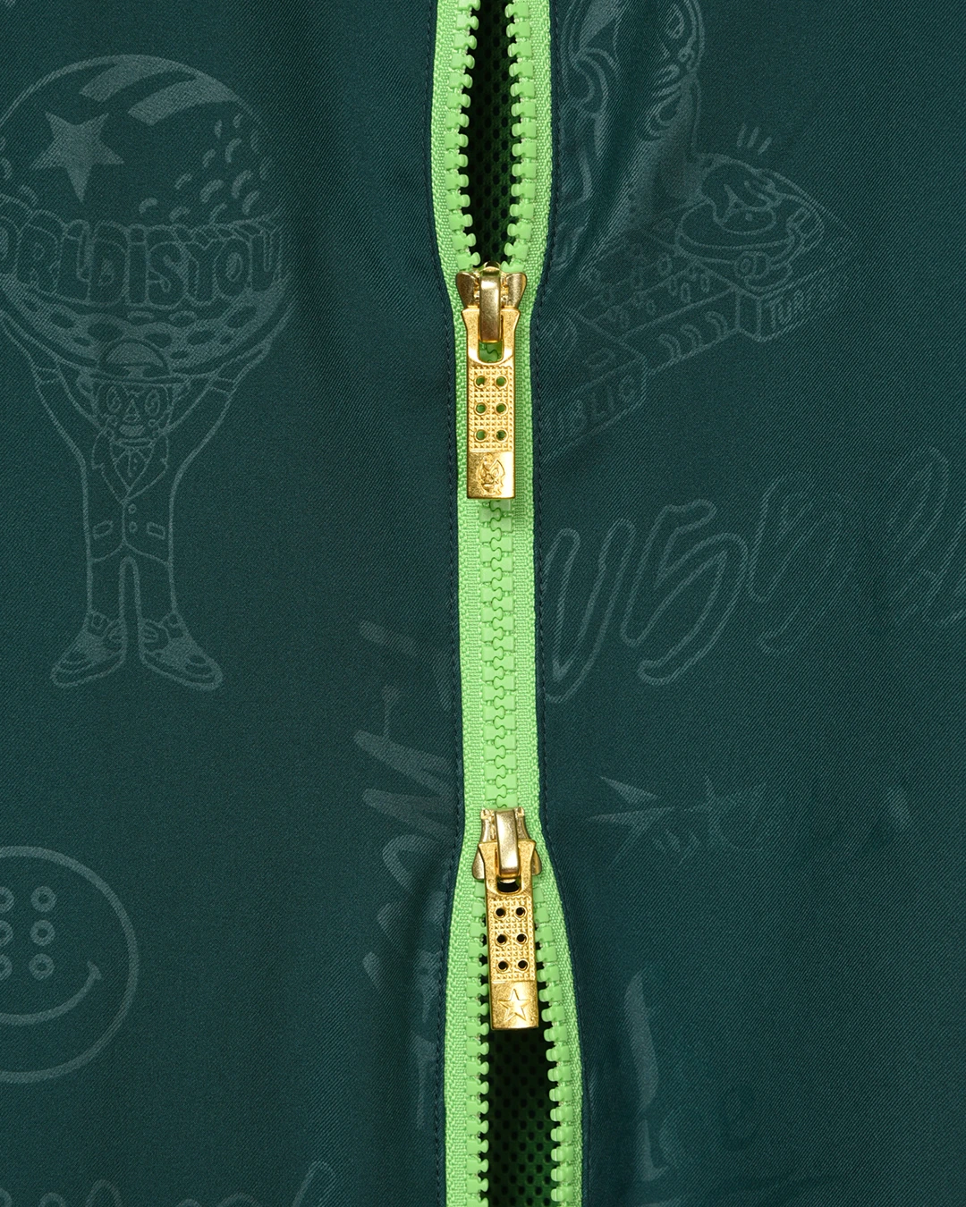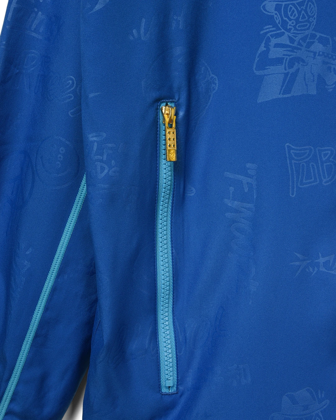 フロントファスナースライダーには、ルチャマスクの刻印が入ります。