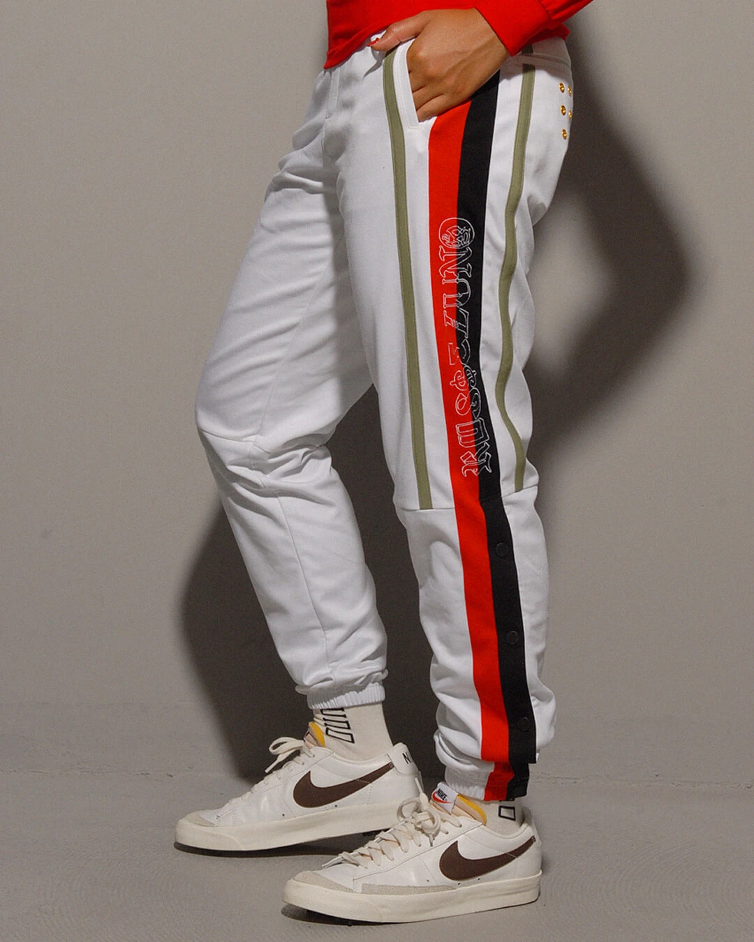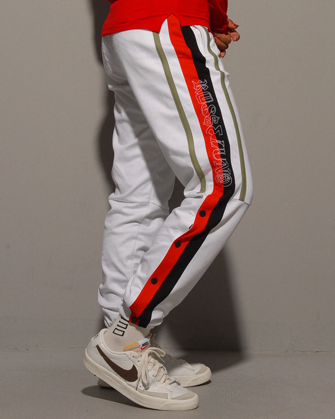 吸汗速乾性、伸縮性に優れたポンチ素材を使用したややワイドシルエットのトラックパンツです。