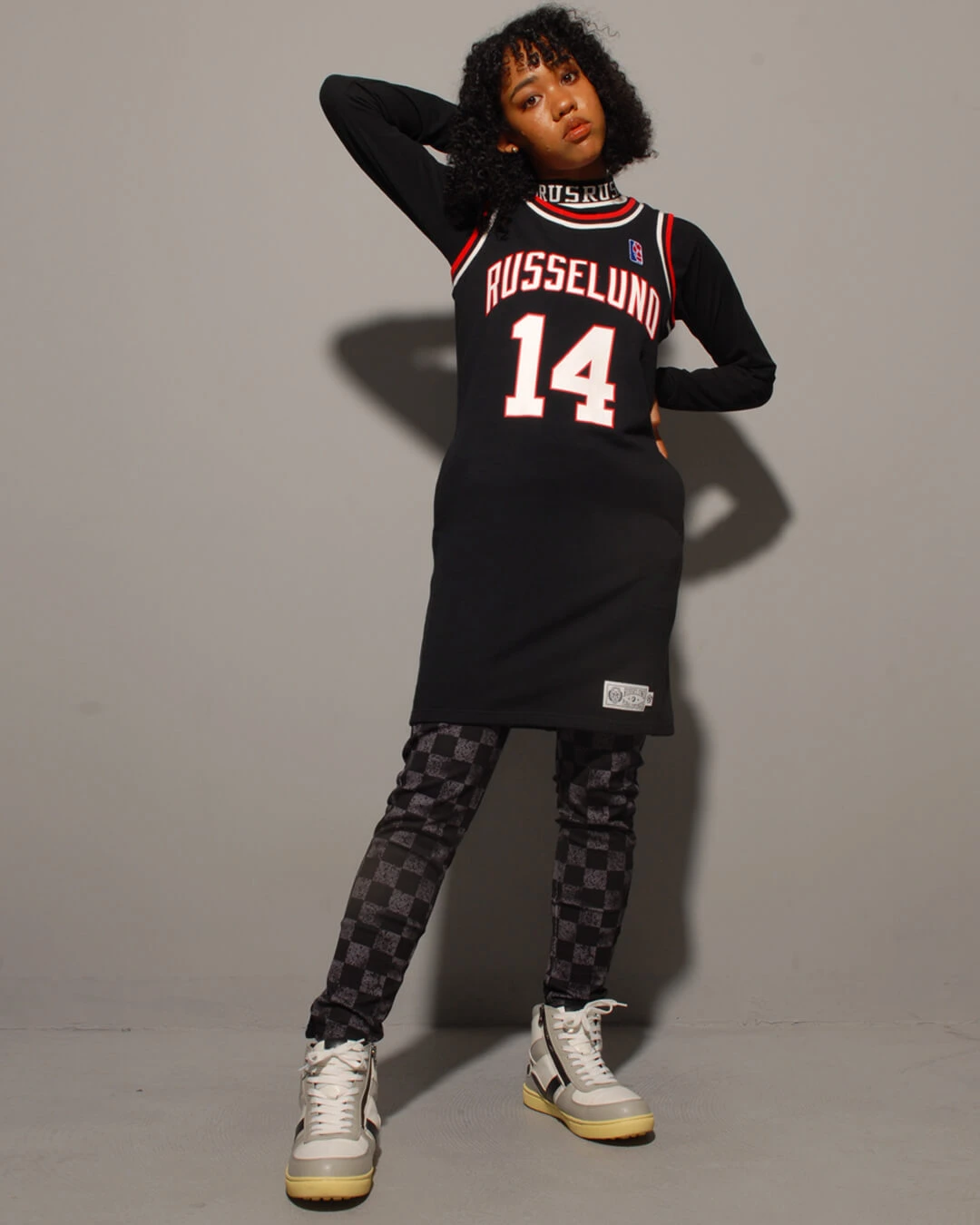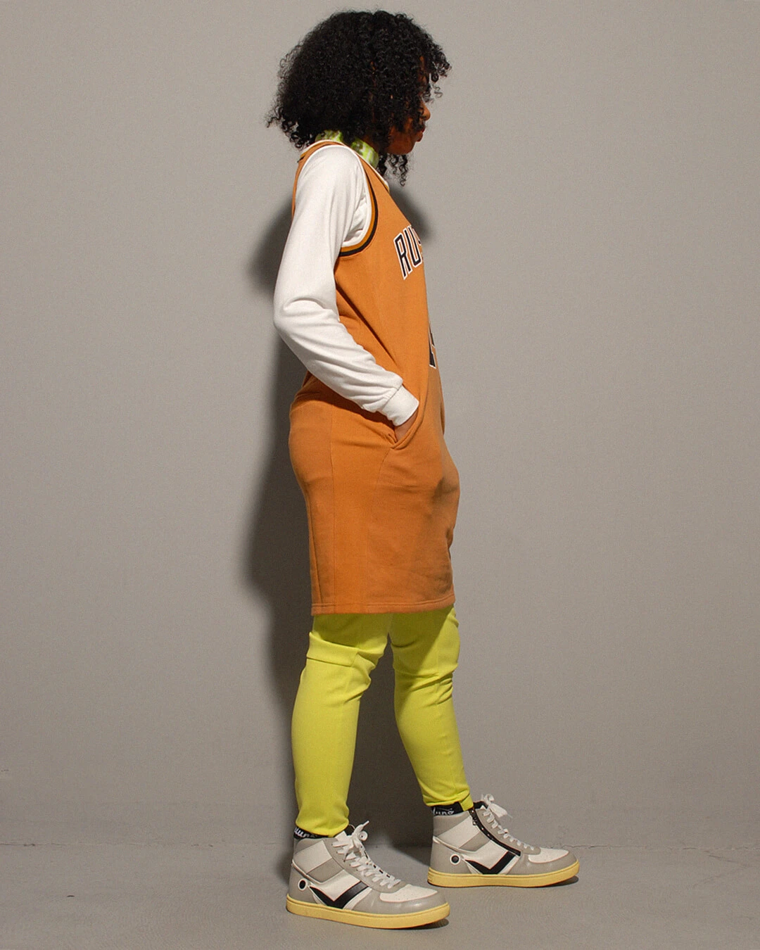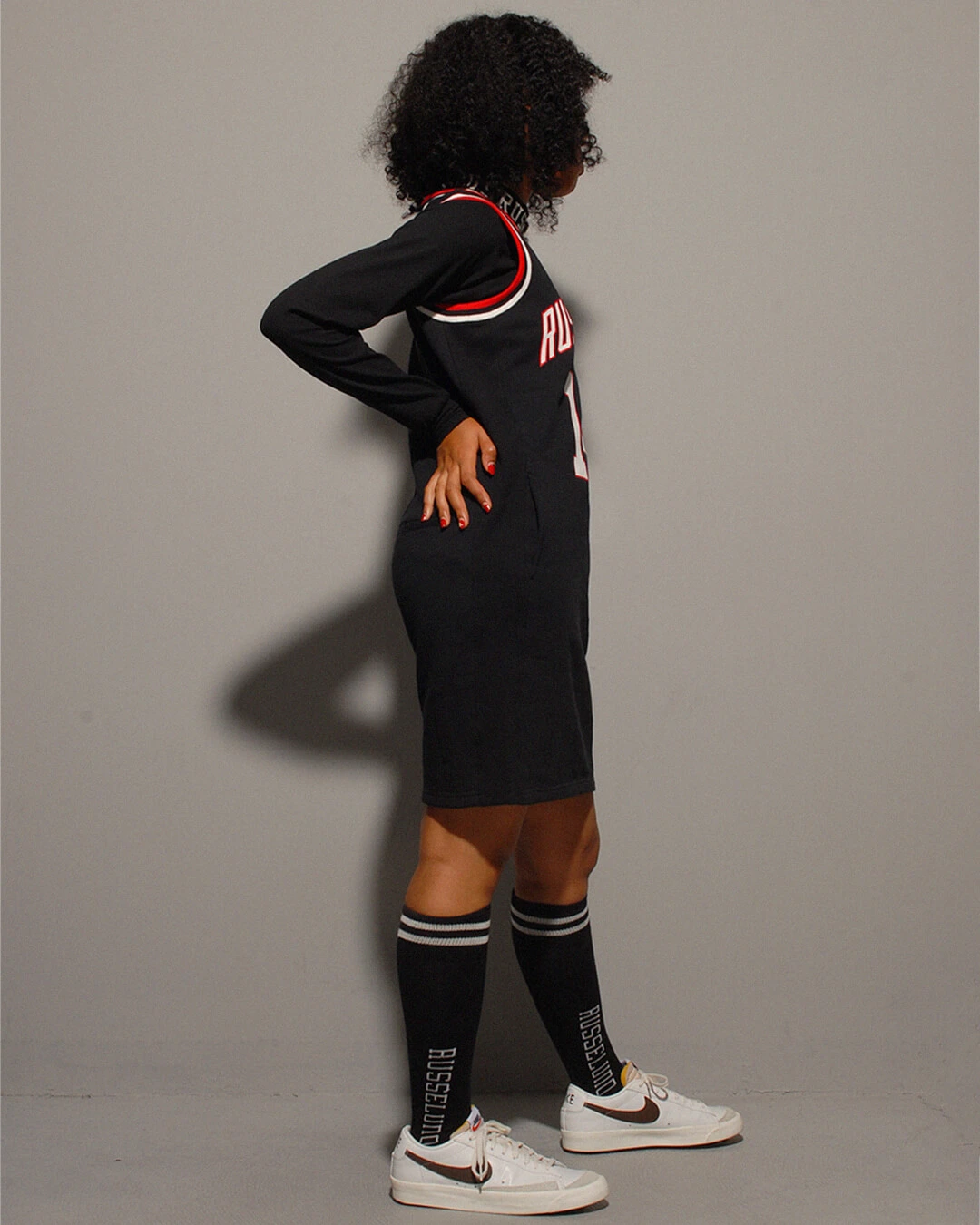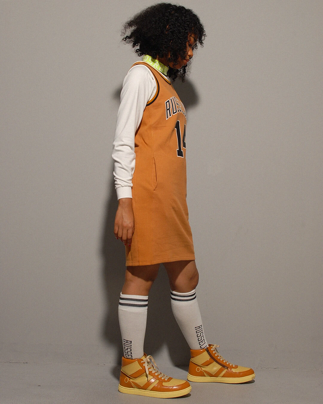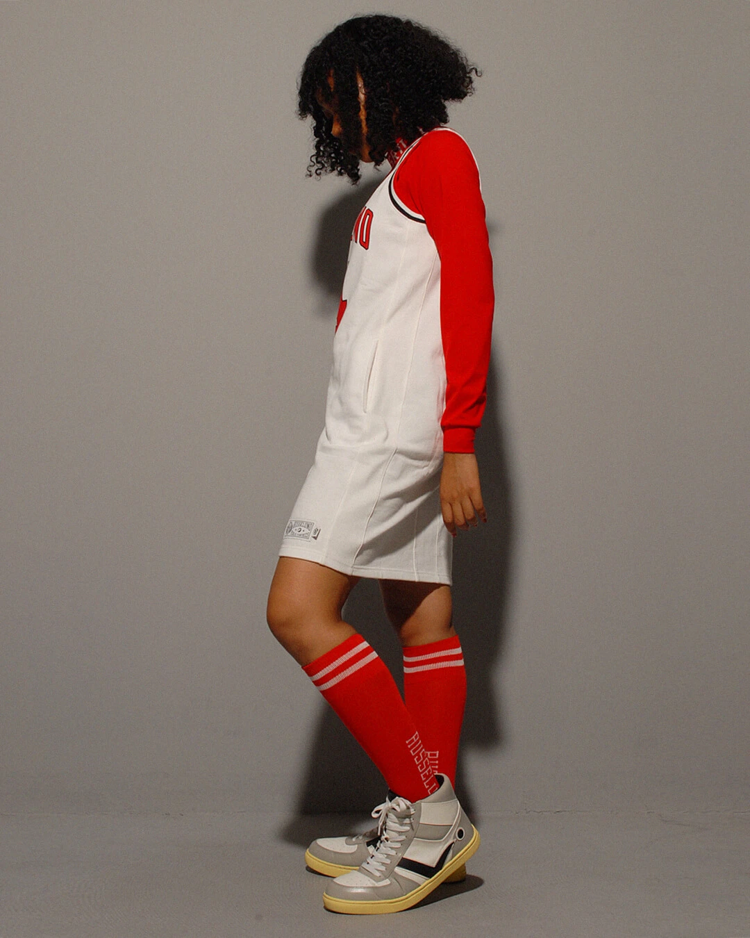 バスケットボールのゲームジャージ風に仕上げたスポーティーな印象のワンピースです。