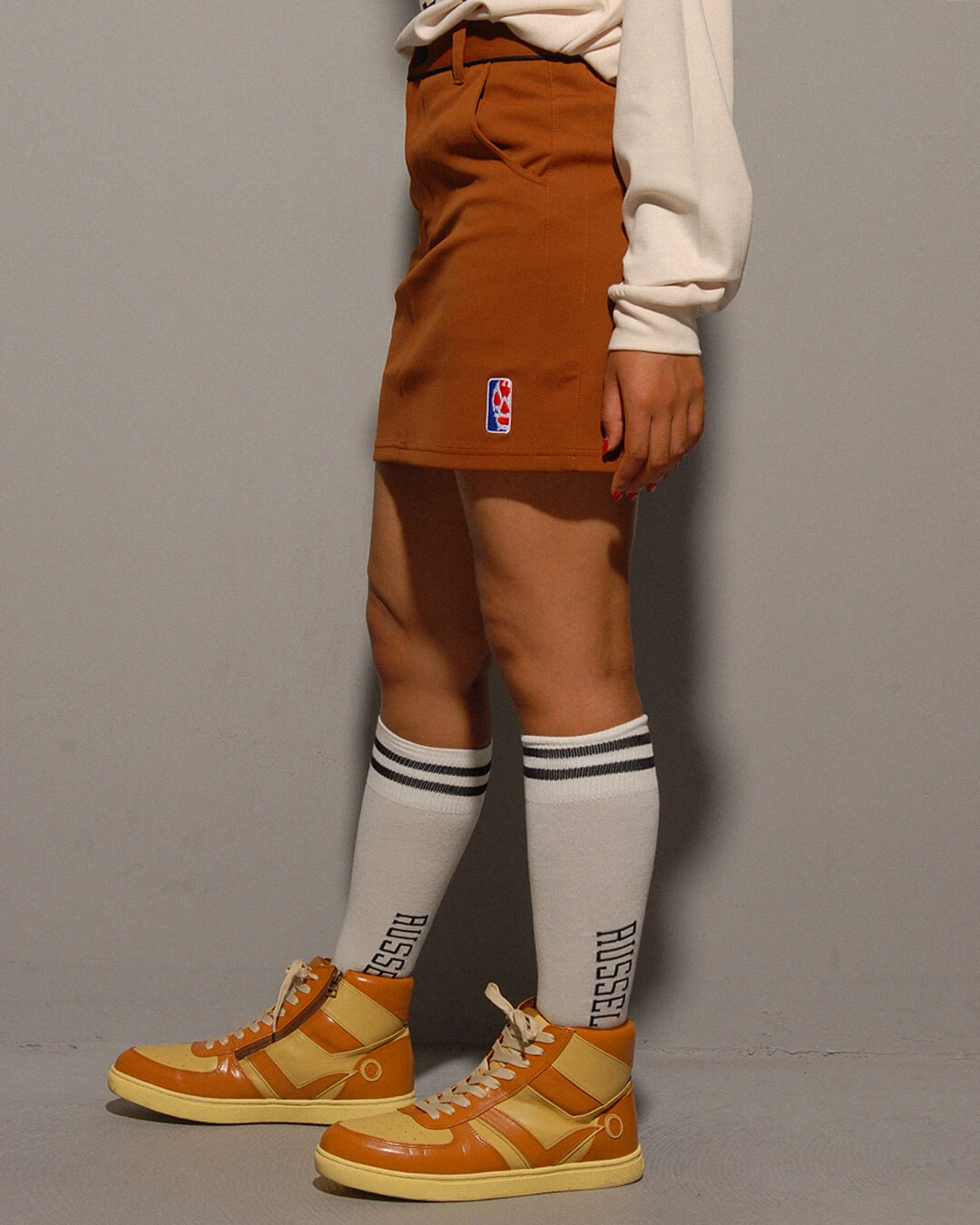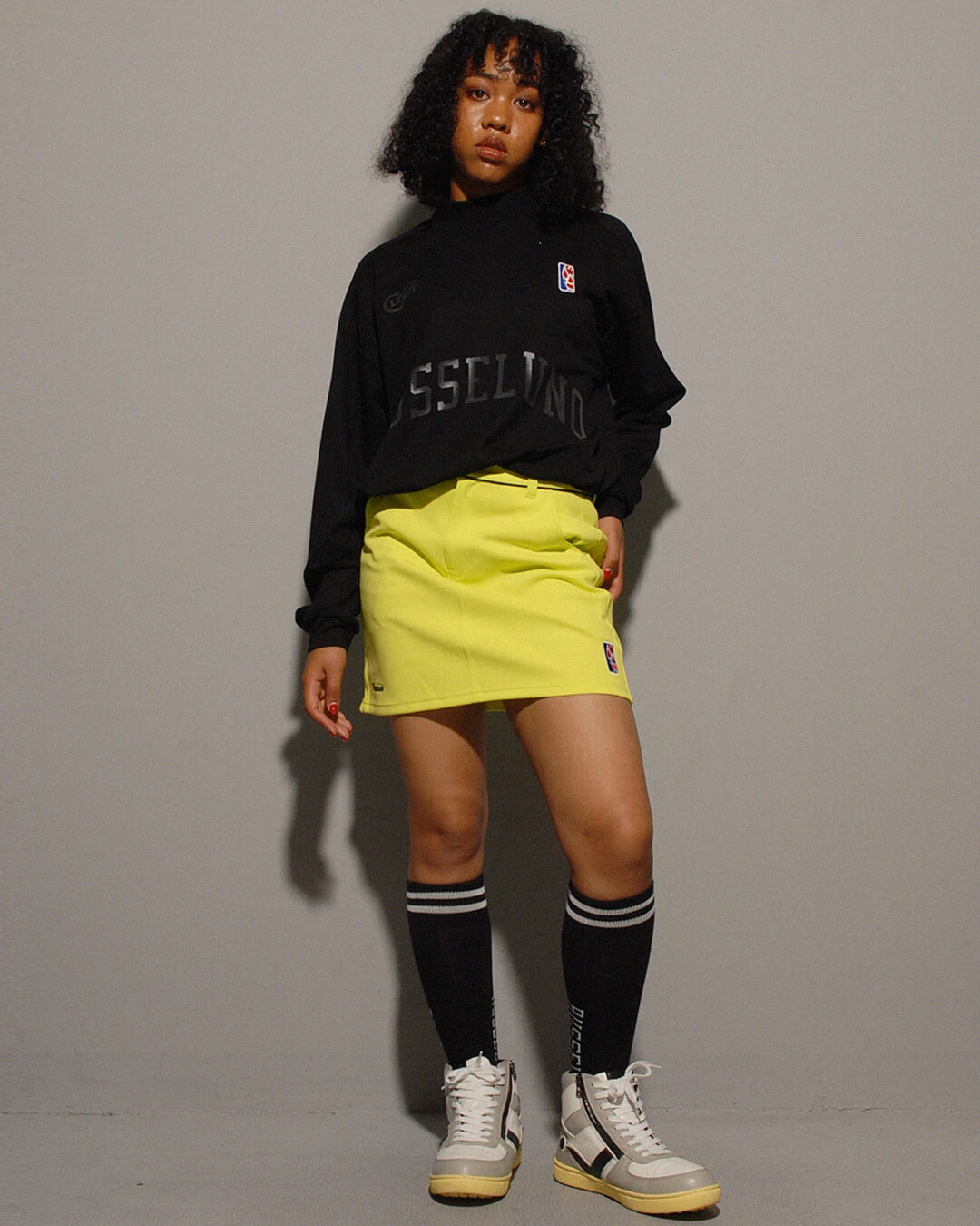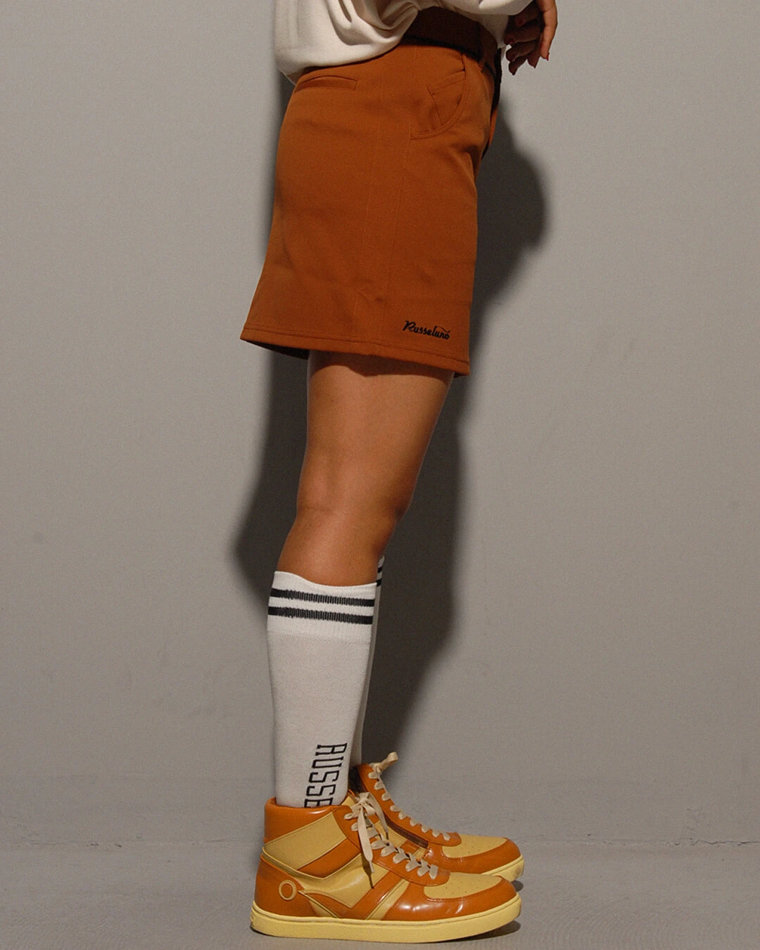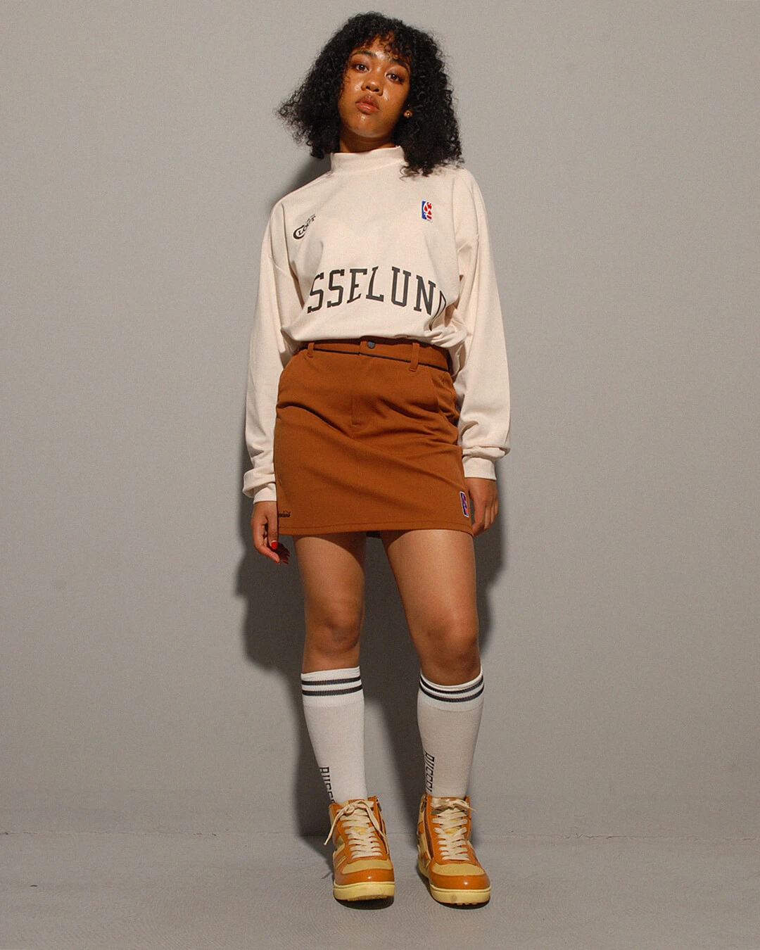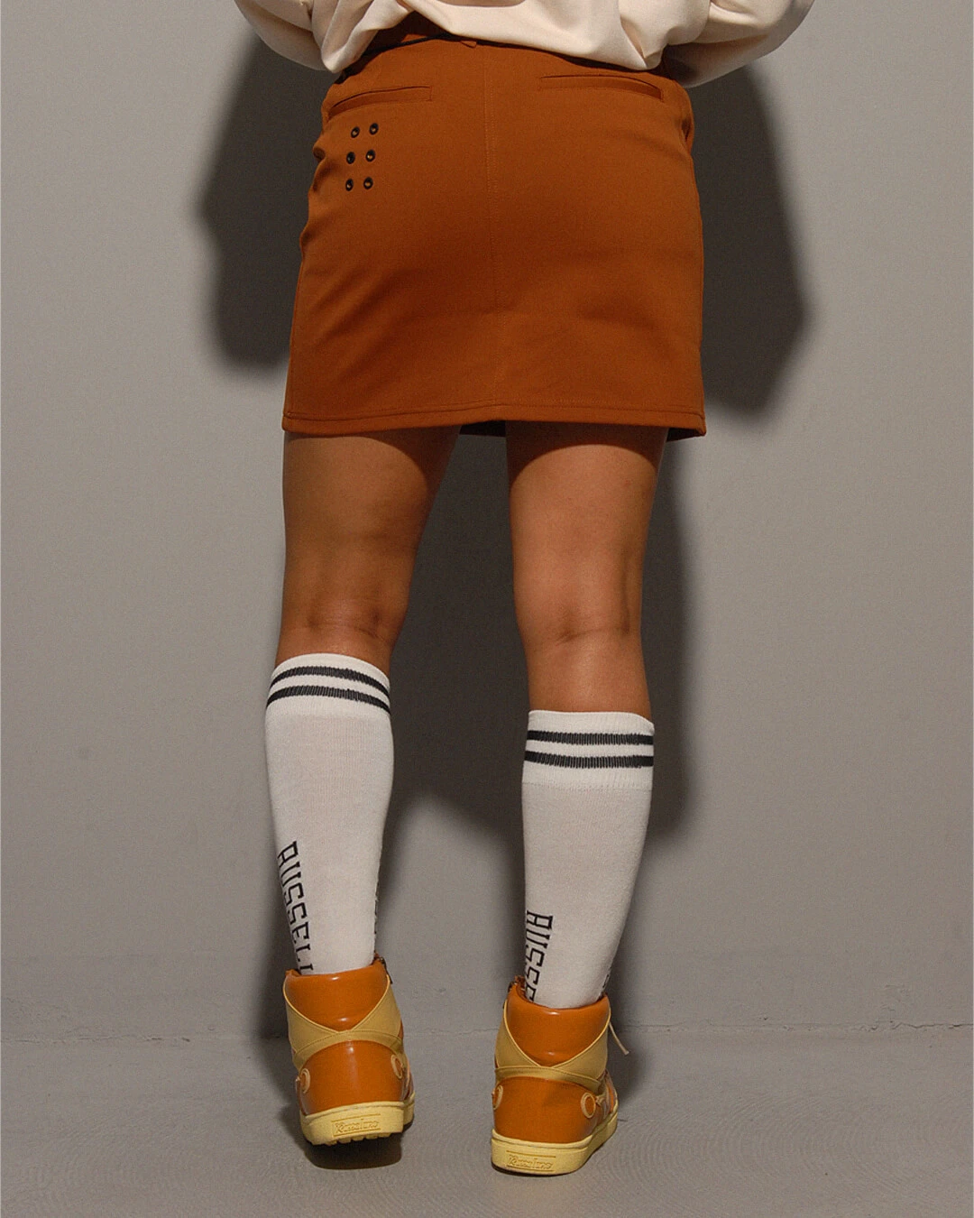 しっかりとした張り感でヘビーな印象とは裏腹に、とても伸縮性に優れ、軽量な素材感のダンボールジャージー素材を使用したスカートです。