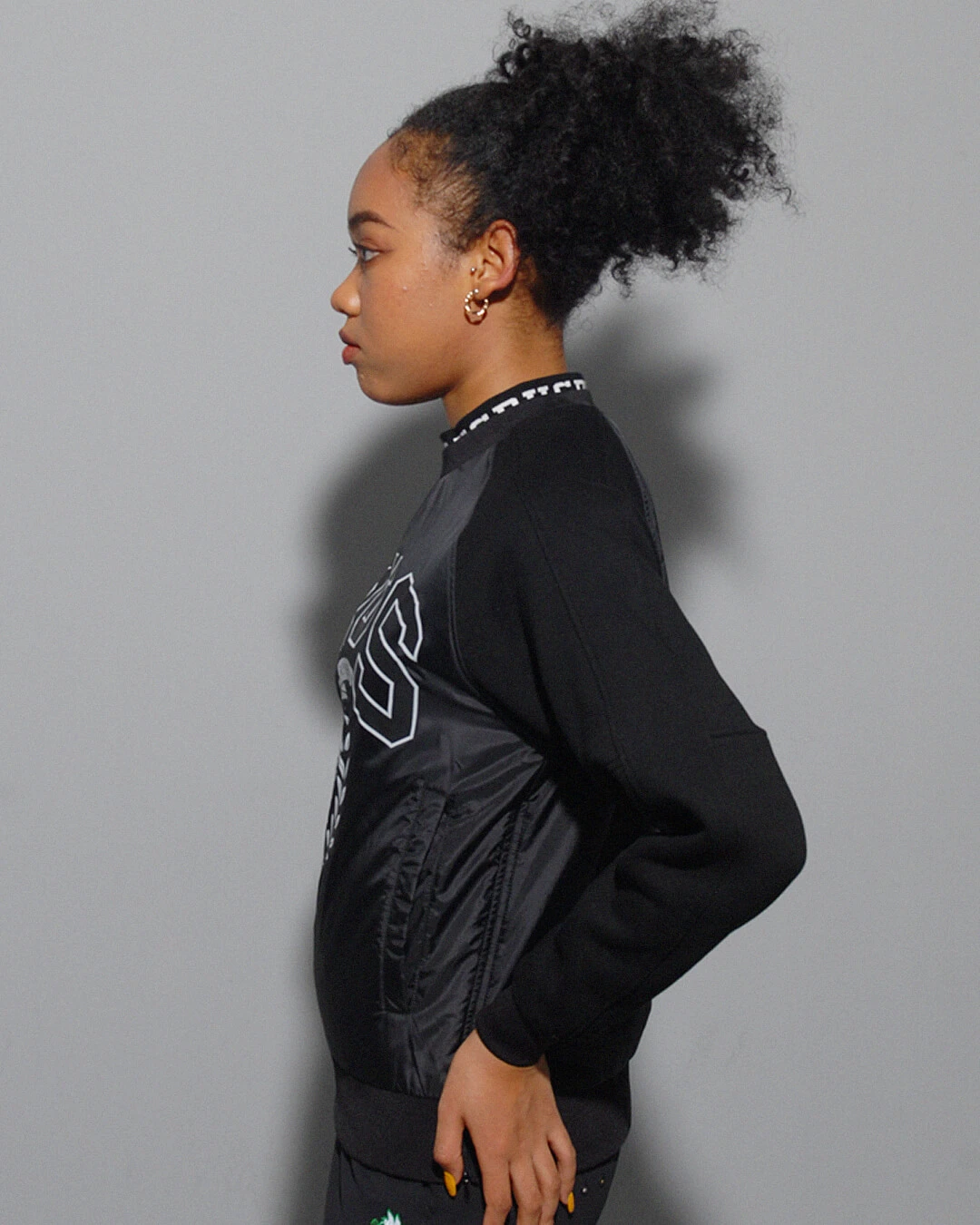 クルーネックスウェットのようなデザインで仕上げたプルオーバータイプのブルゾンです。