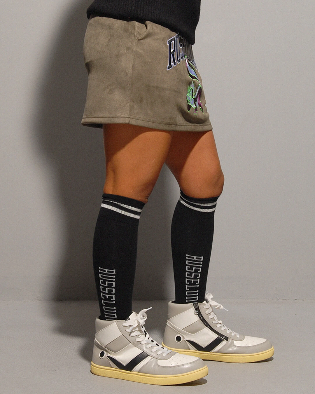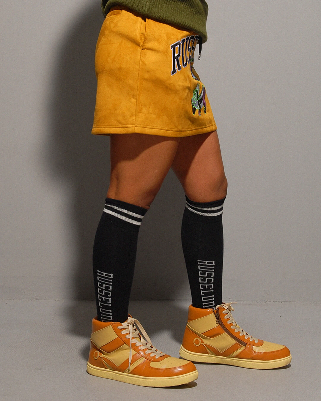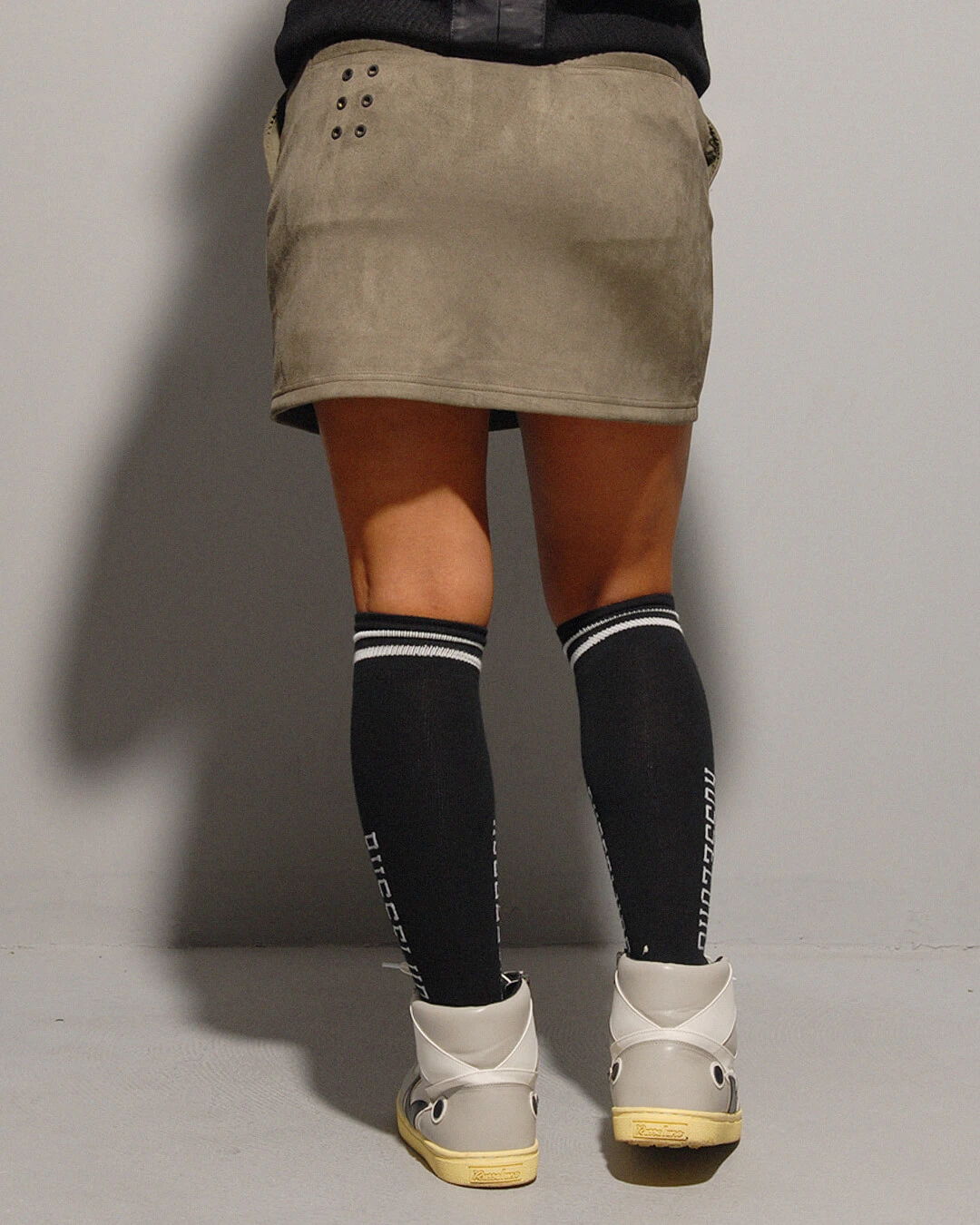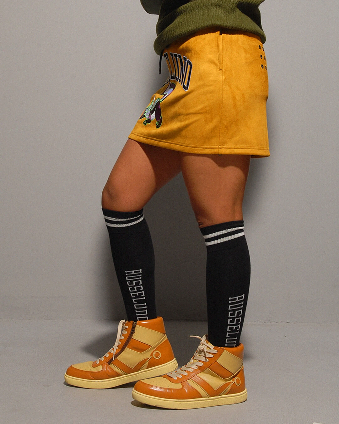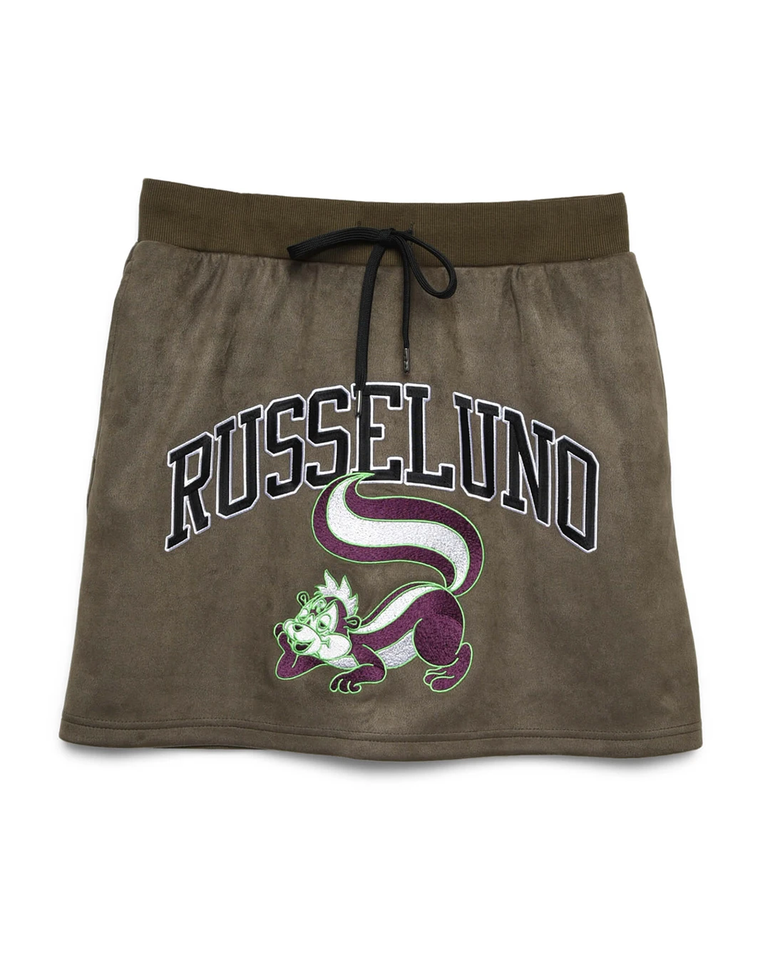 LUCHA SKUNKが大胆に刺繍されたインパクトあるスカートです。