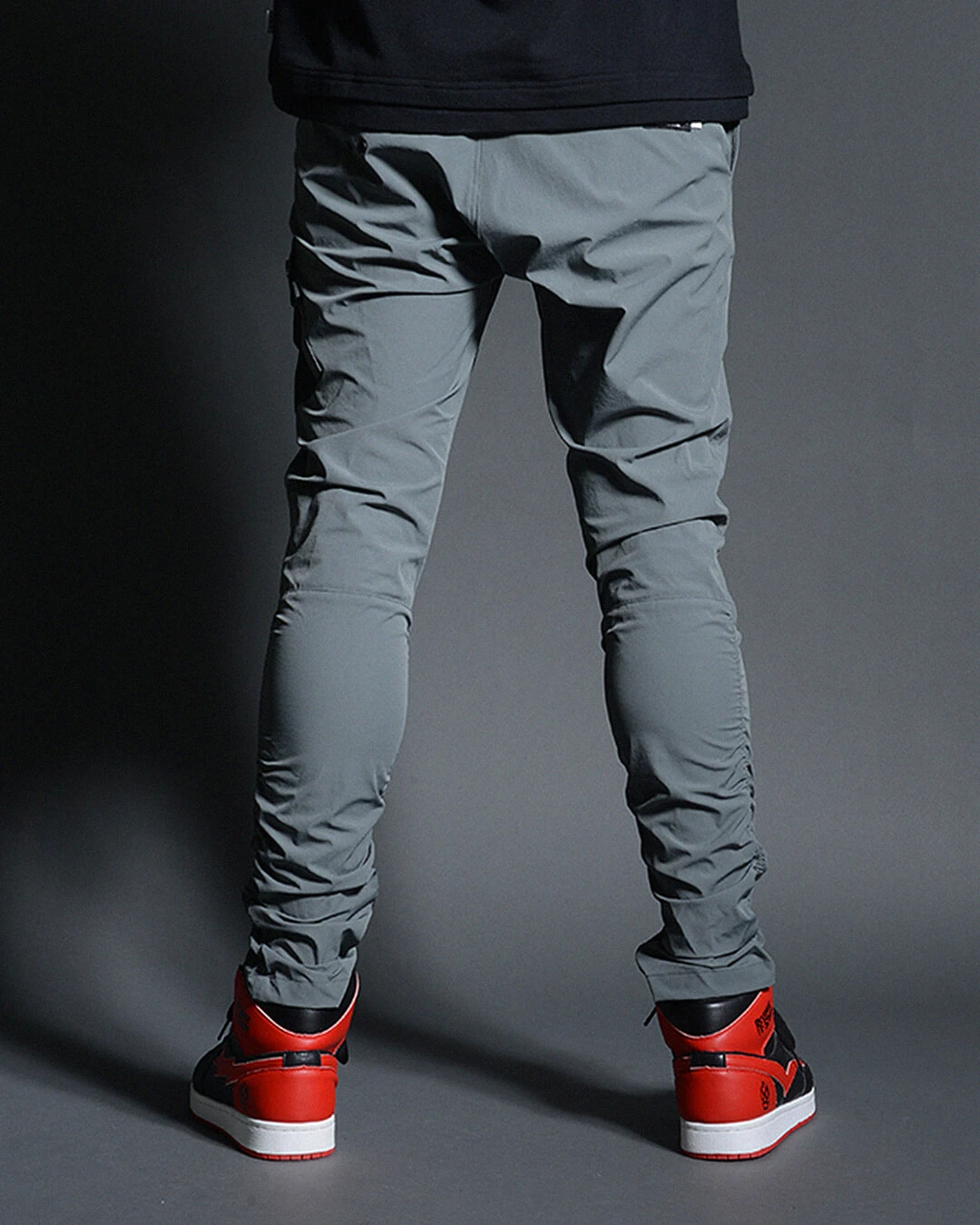 スキニーシルエットながら、ギャザーの伸縮でふくらはぎの収縮にぴったりとフィットする履き心地。