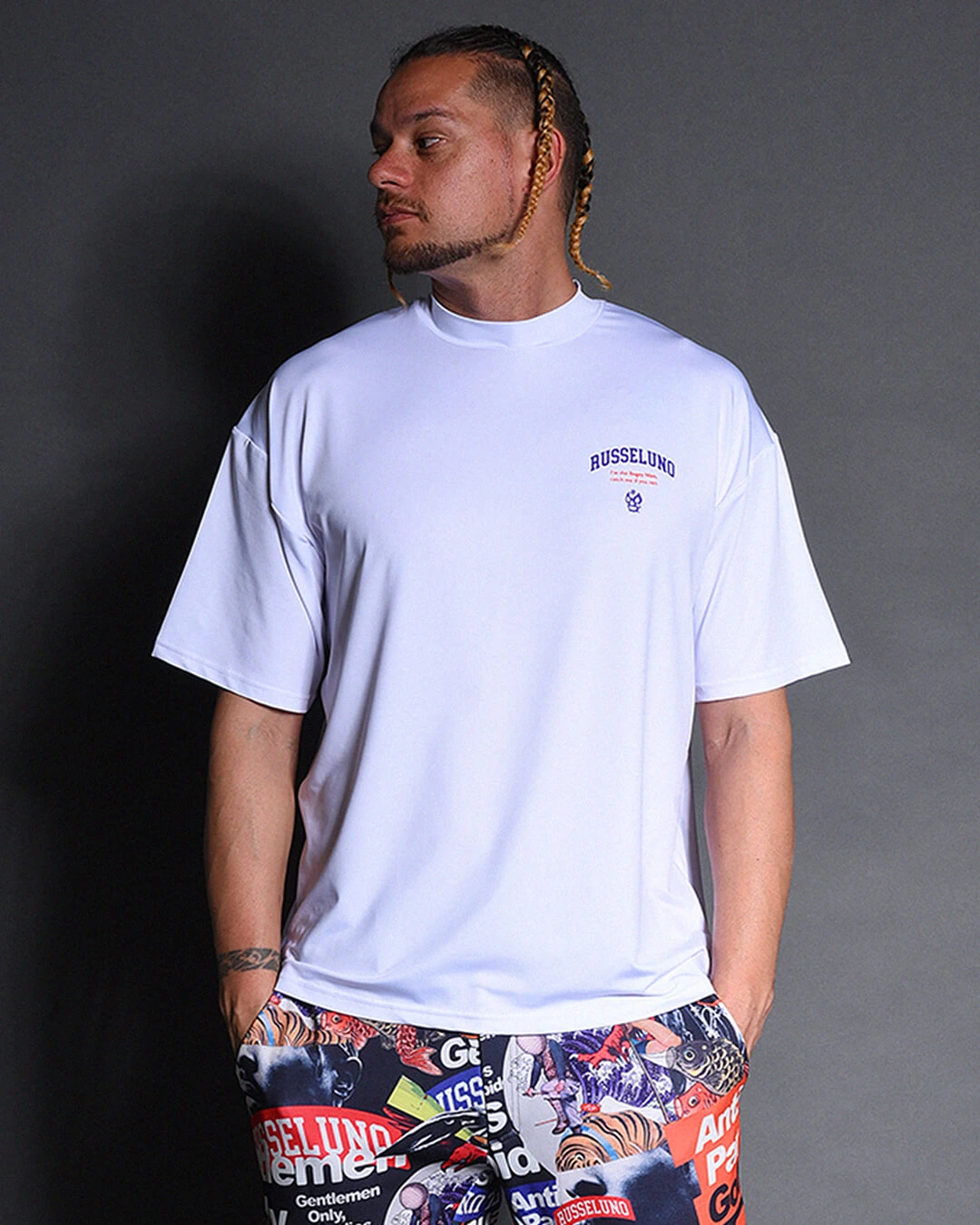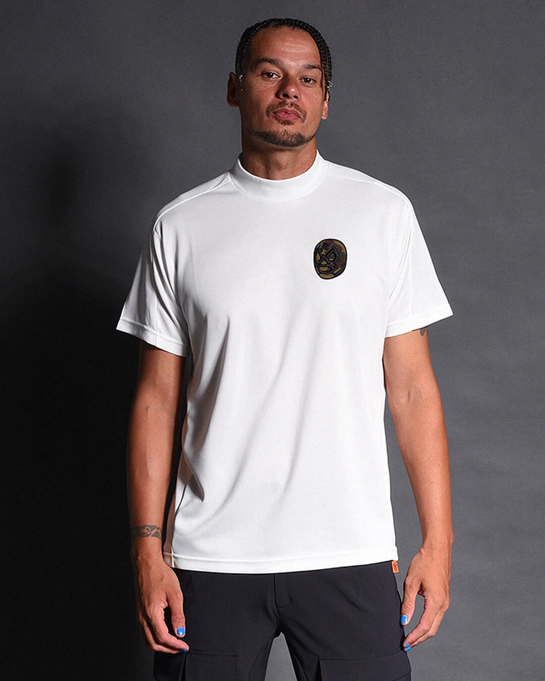REGULAR FIT MOCKNECK Ts (CAMO LUCHA WAPPEN) レギュラーフィットモックネックTシャツ(カモルチャワッペン)